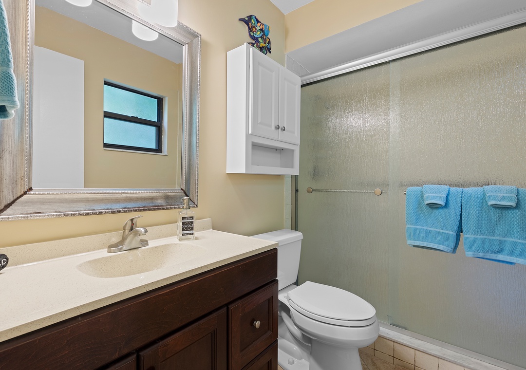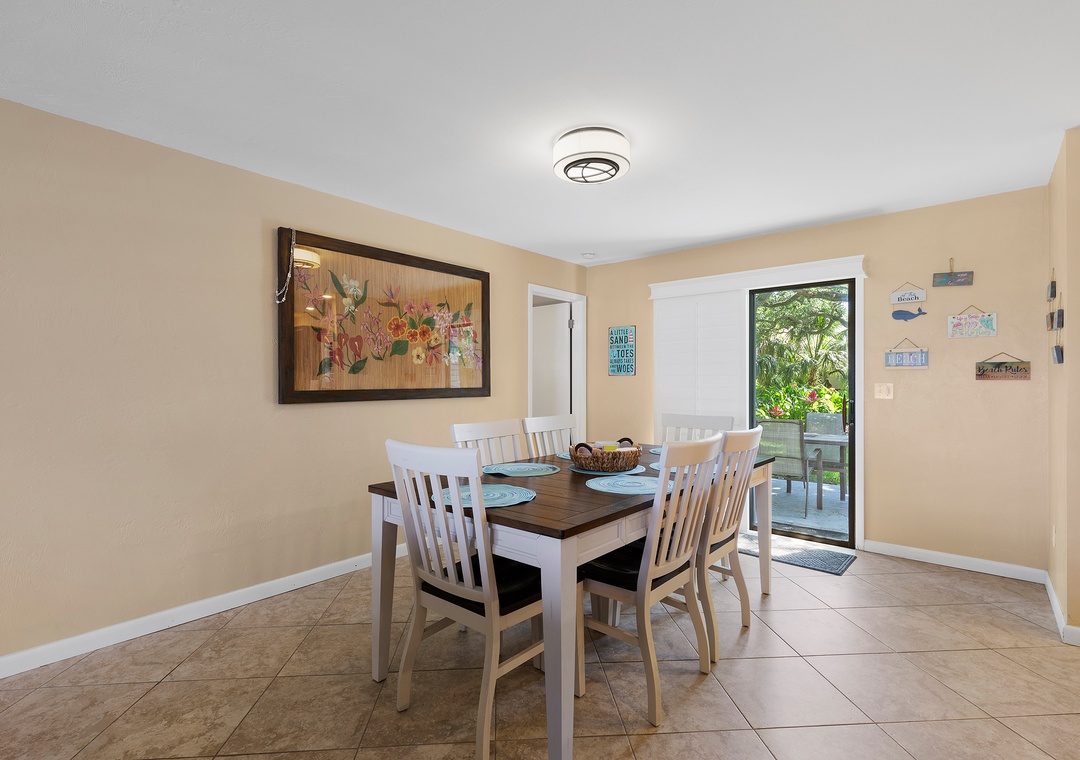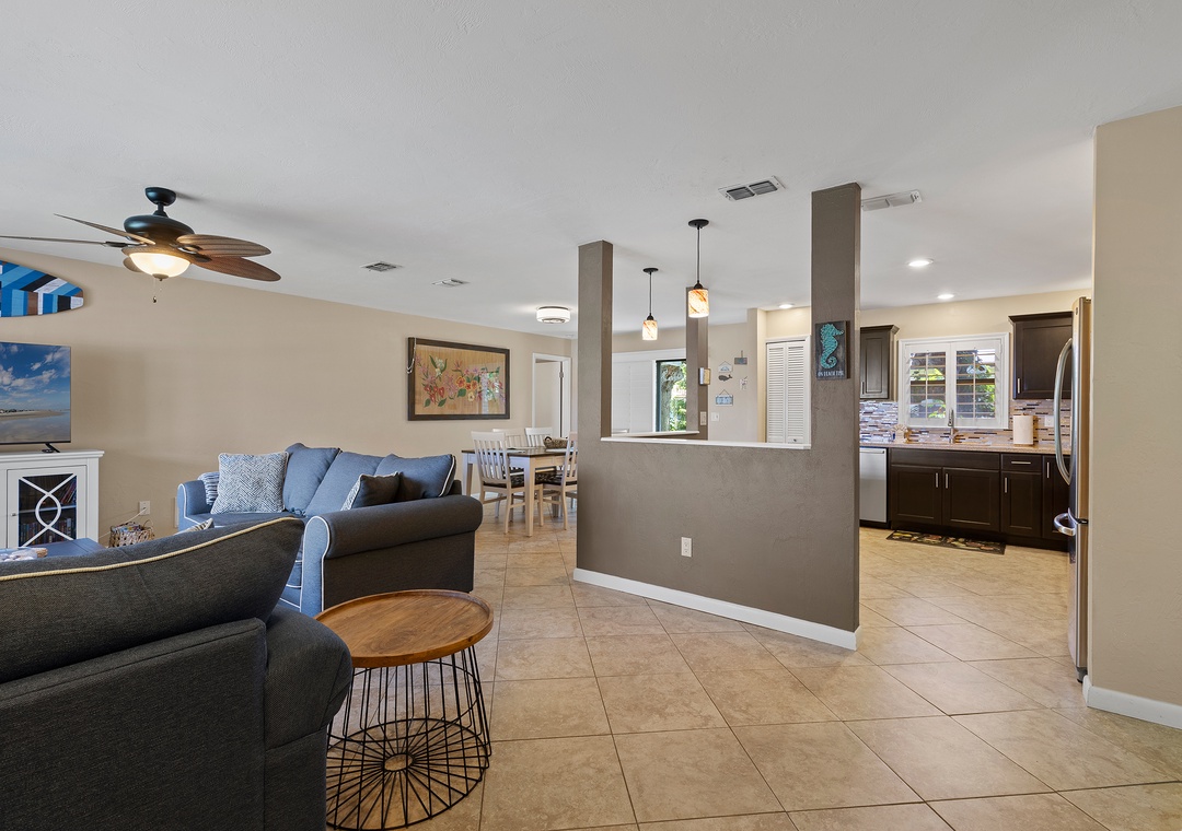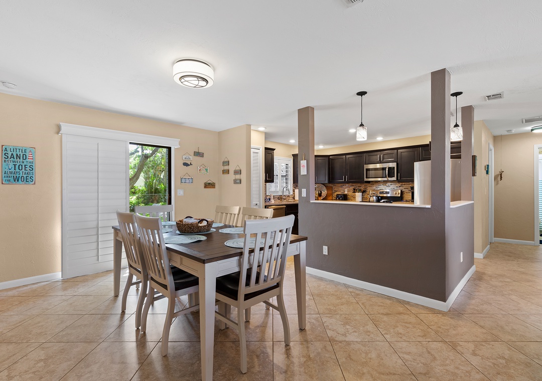 Outdoors, Pelican’s Cove has you covered with everything you need for fun in the Florida sun—two kayaks, beach chairs, a foldable wagon, and more, all stored in the garage for your convenience. After a day of exploring, enjoy the backyard patio under the shady trees, or unwind in the cheerful primary suite with a king bed, Roku TV, and private bath. The guest bedroom features a queen bed and extra sleeping space with a twin air mattress. With amenities like a washer/dryer, Roku streaming, wireless internet, and plenty of linens and beach gear, Pelican’s Cove is the perfect home base for your next family adventure.