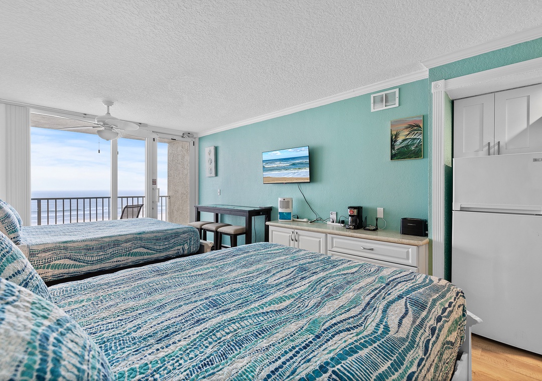 Are you ready for a less expensive getaway? This condo has an incredible view with balcony but no pool and amenities, which translates into savings for you- and you are not going to be inside anyway or at a pool- you are going to be on the beach, and eating and drinking and playing at all the cool spots that only Daytona offers. You have things to do and places to go; so, rent your new favorite friends or small family getaway and enjoy your life, hassle-free and with more money to do all the things.