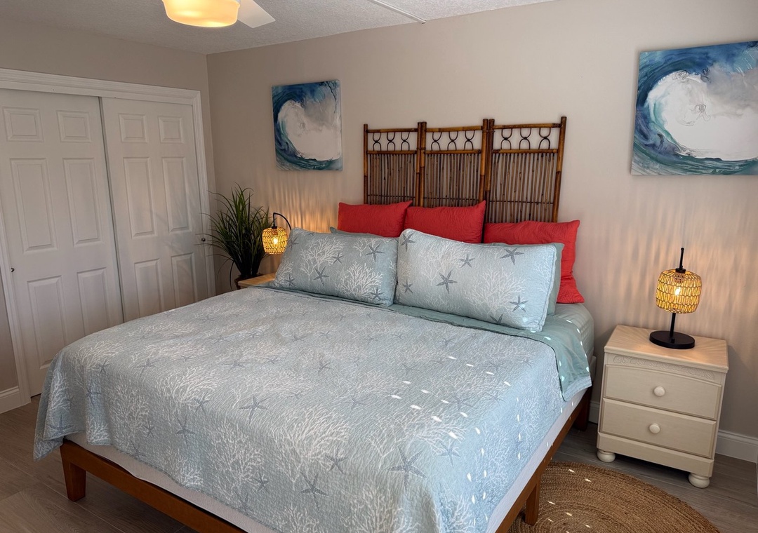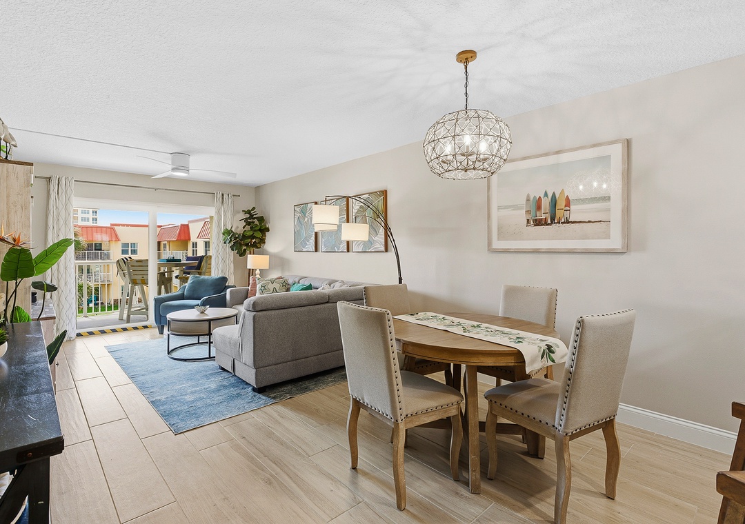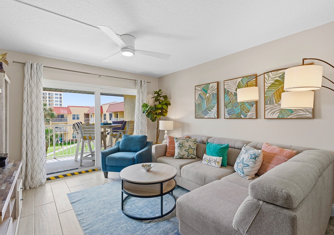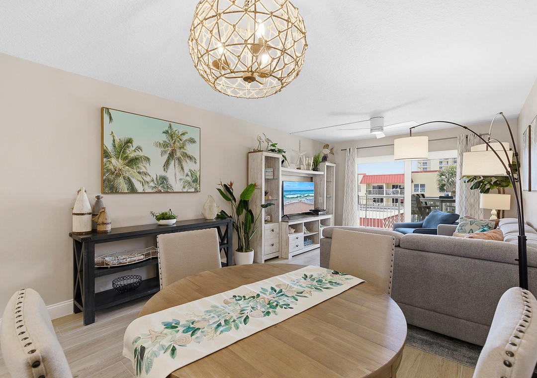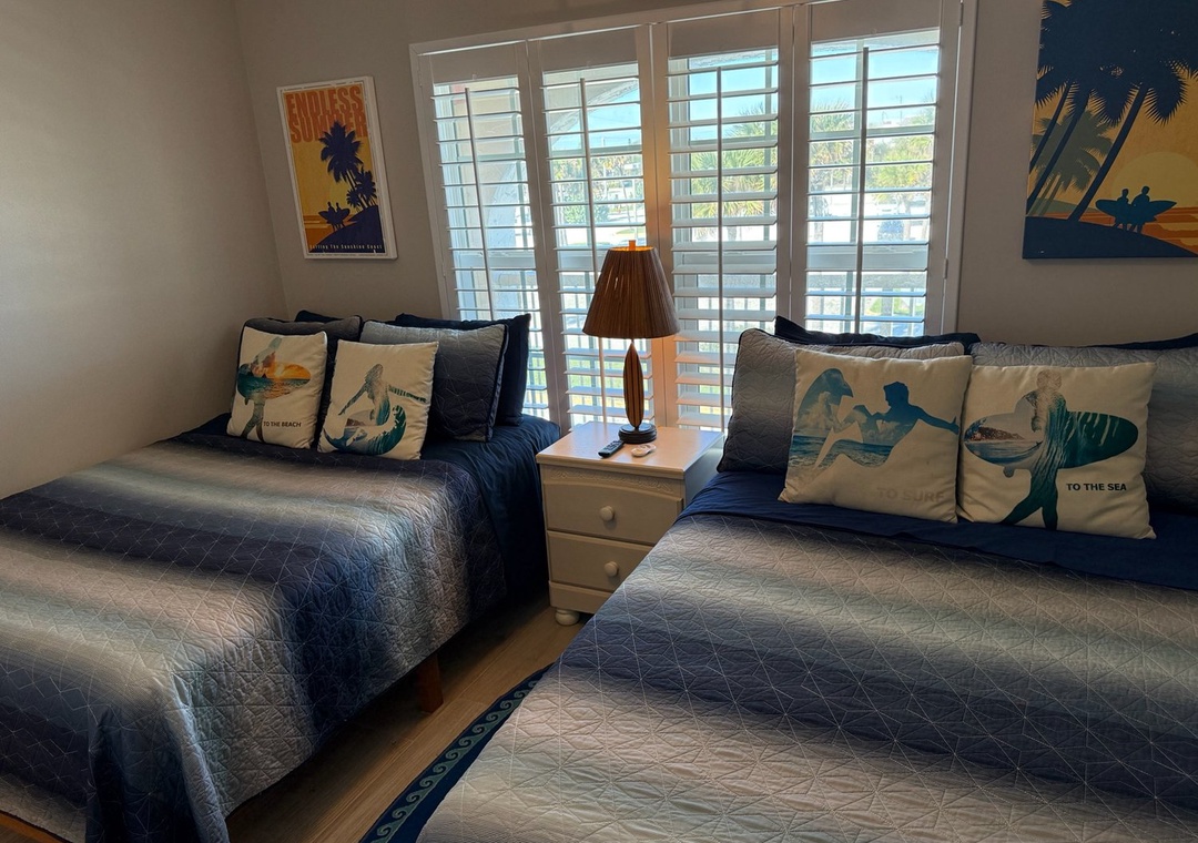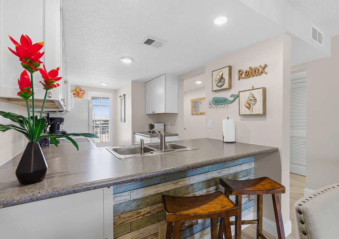 Welcome to Point East 310! Kick back and relax in this super cute, completely renovated 2-bedroom condo in beautiful New Smyrna Beach, thoughtfully designed for easy, breezy coastal living and located on the top floor of a quiet three-story complex for a light, private, and laid-back feel. The primary bedroom features a king bed, ensuite bathroom, and direct balcony access, just like the living room, while the guest bedroom offers two double beds, comfortably sleeping up to six guests; inside, beachy décor, a calming neutral palette with pops of coastal color, a comfy sofa, and a dining area with seating for six create a welcoming space to unwind, and outside, the private balcony is perfect for outdoor dining or relaxing in the salty breeze; an effortlessly stylish, vacation-ready retreat with all the vibes of a perfect New Smyrna escape.