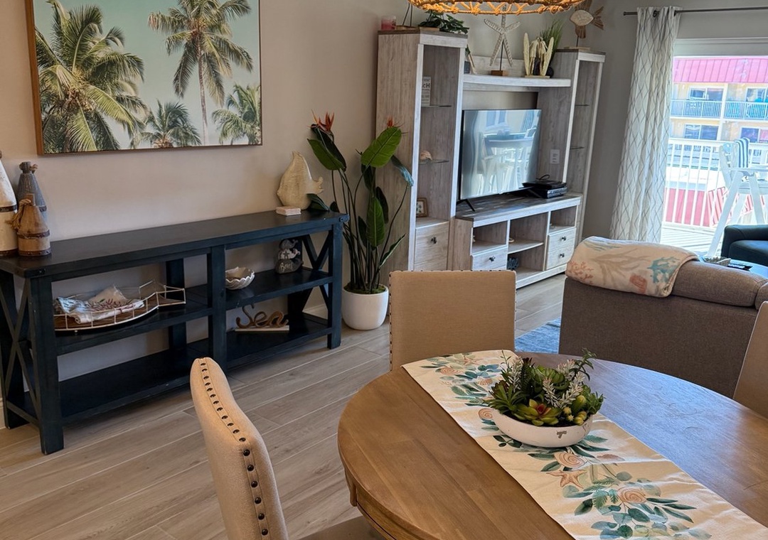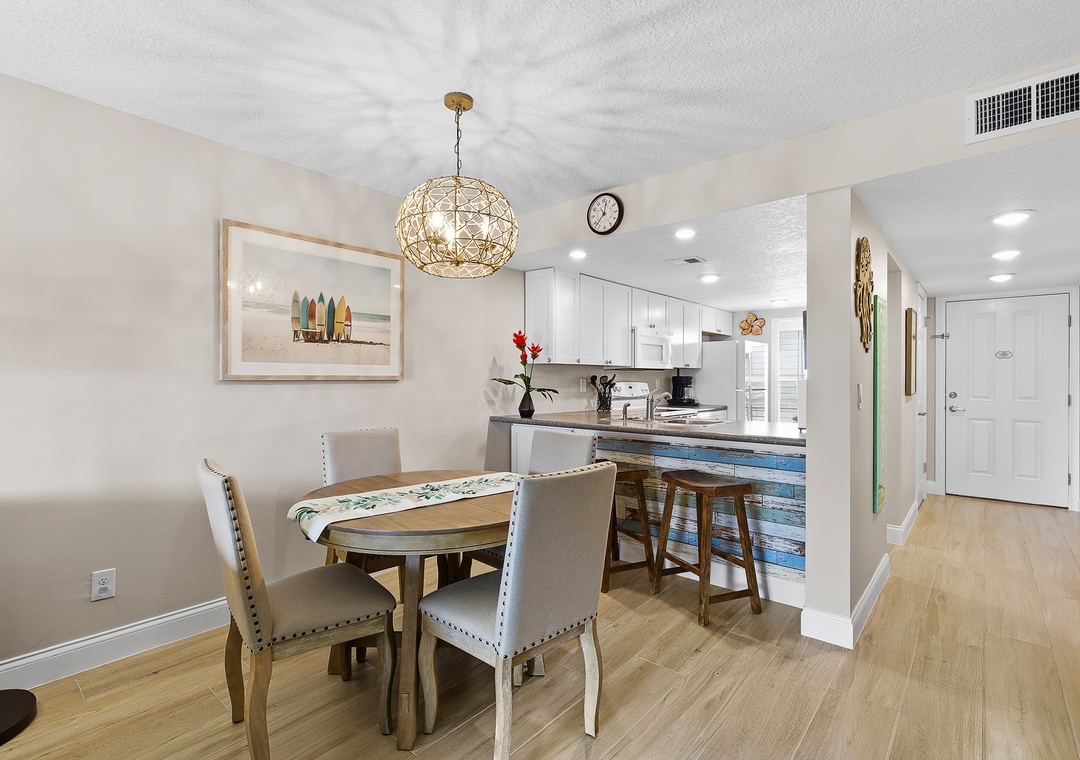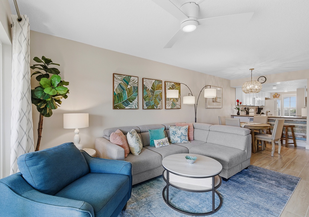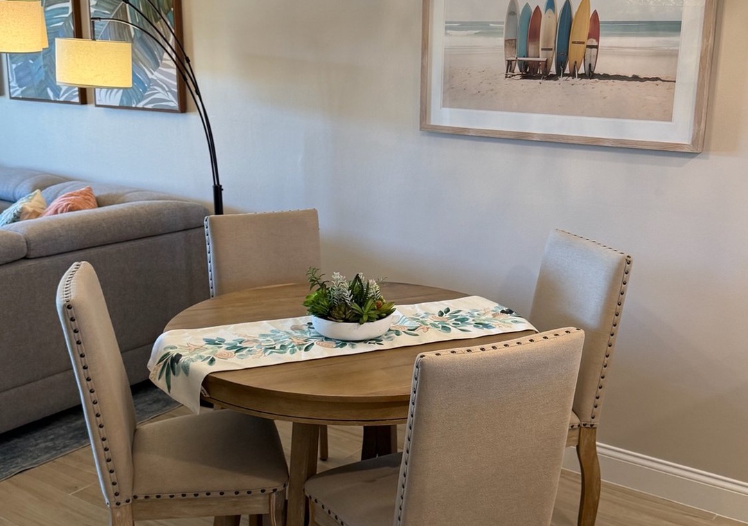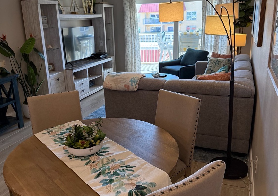 Welcome to Point East 310! Kick back and relax in this super cute, completely renovated 2-bedroom condo in beautiful New Smyrna Beach, thoughtfully designed for easy, breezy coastal living and located on the top floor of a quiet three-story complex for a light, private, and laid-back feel. The primary bedroom features a king bed, ensuite bathroom, and direct balcony access, just like the living room, while the guest bedroom offers two double beds, comfortably sleeping up to six guests; inside, beachy décor, a calming neutral palette with pops of coastal color, a comfy sofa, and a dining area with seating for six create a welcoming space to unwind, and outside, the private balcony is perfect for outdoor dining or relaxing in the salty breeze; an effortlessly stylish, vacation-ready retreat with all the vibes of a perfect New Smyrna escape.