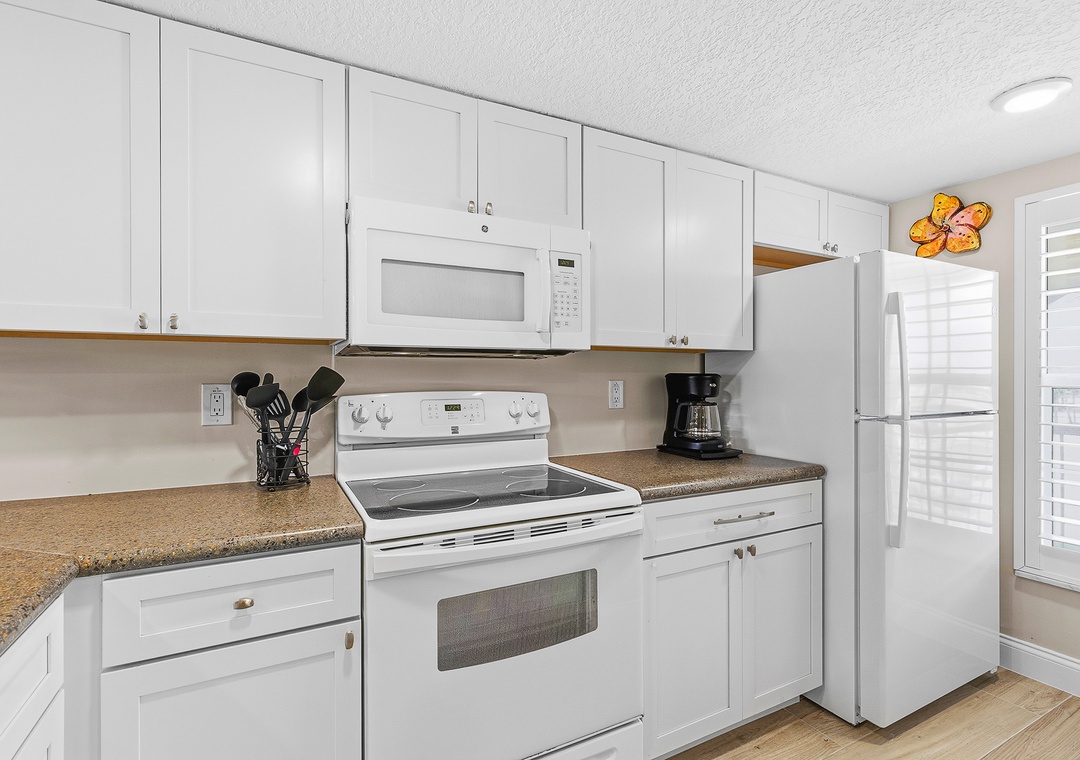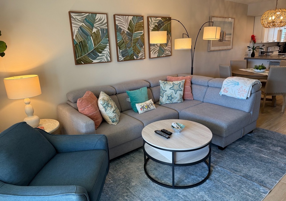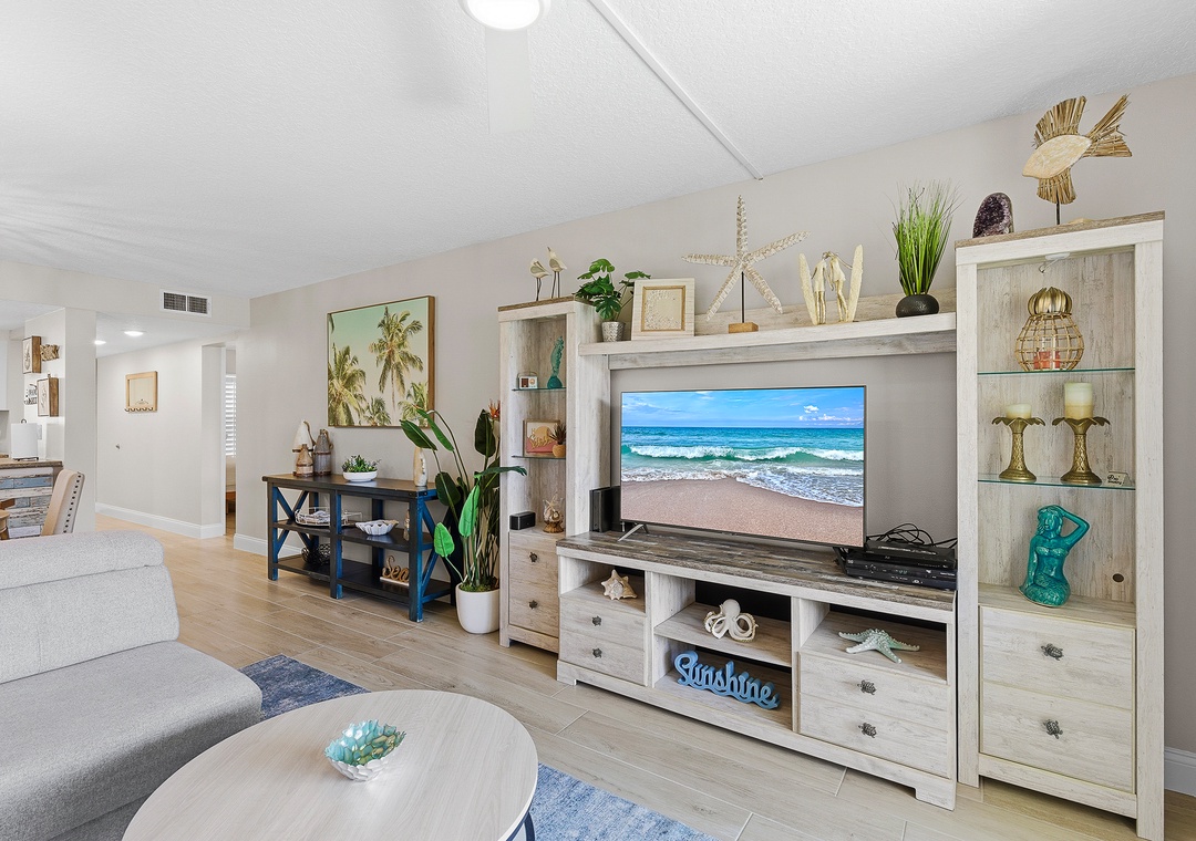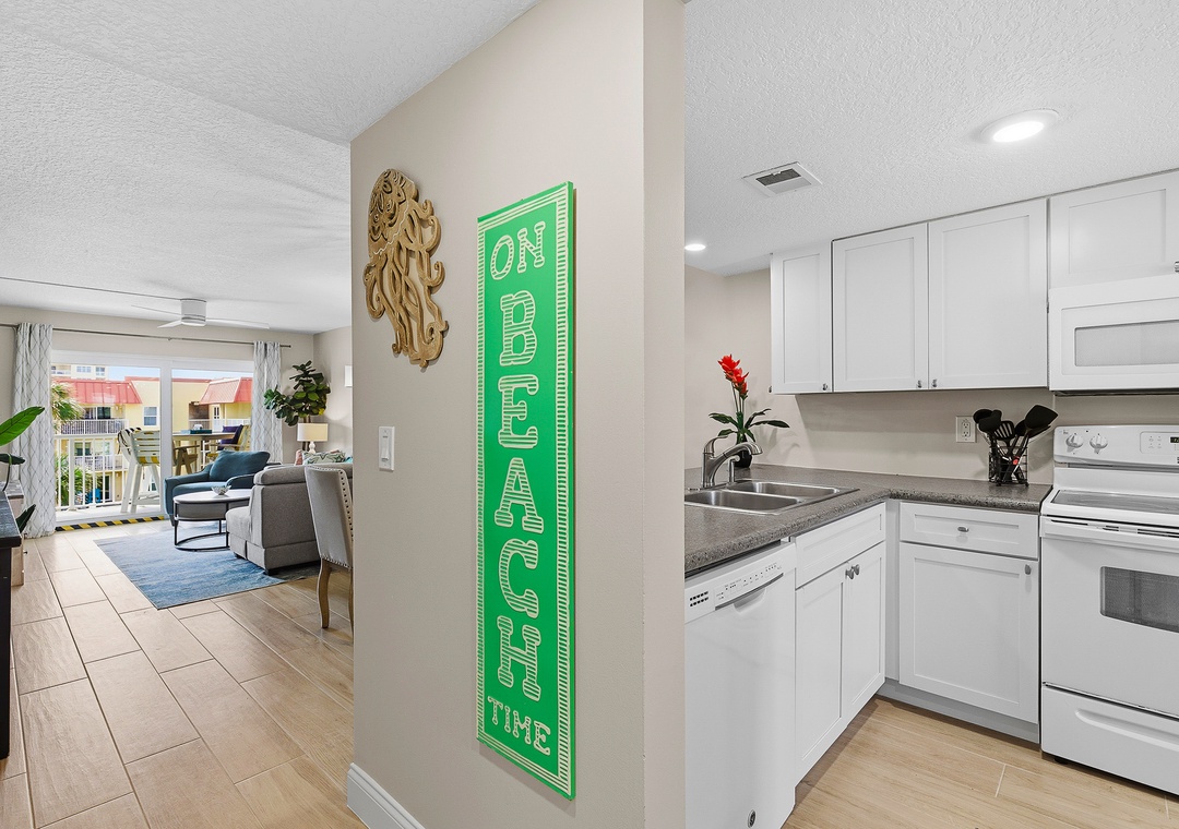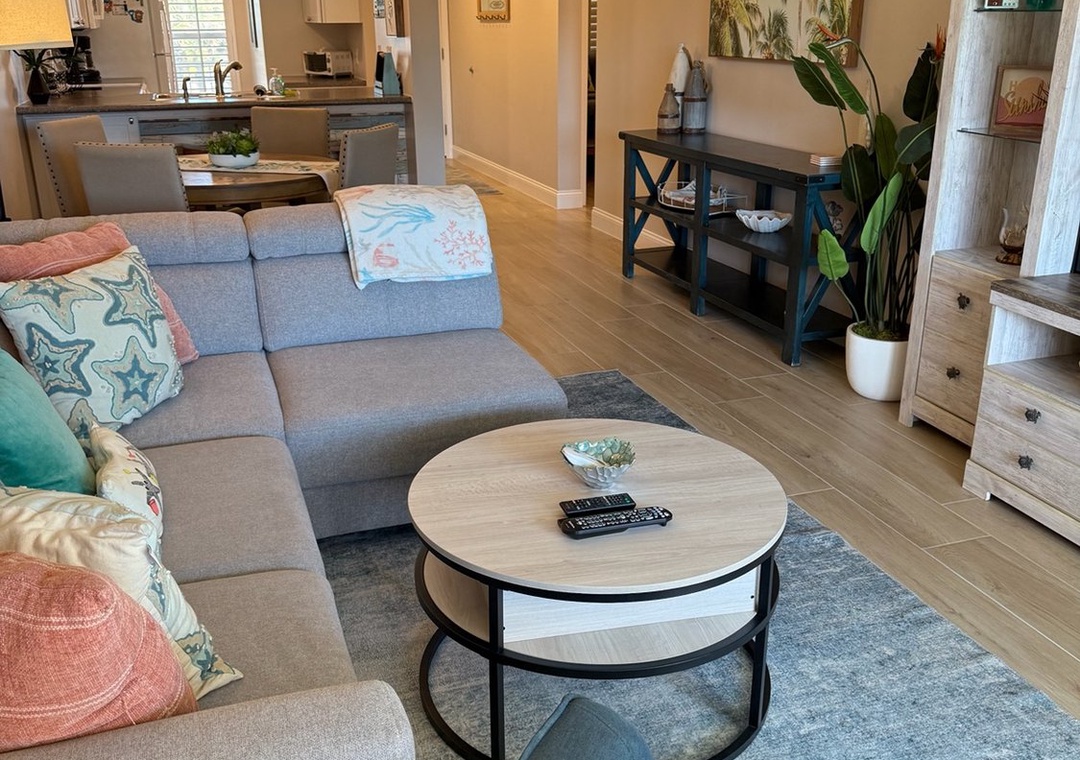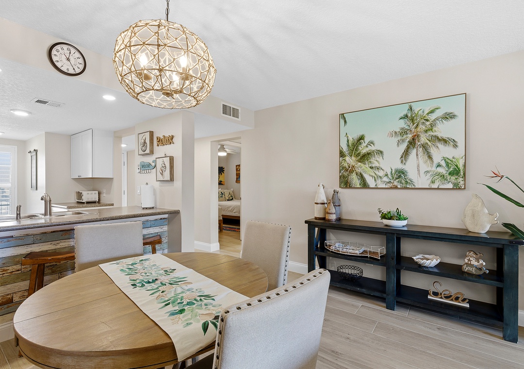 Welcome to Point East 310! Kick back and relax in this super cute, completely renovated 2-bedroom condo in beautiful New Smyrna Beach, thoughtfully designed for easy, breezy coastal living and located on the top floor of a quiet three-story complex for a light, private, and laid-back feel. The primary bedroom features a king bed, ensuite bathroom, and direct balcony access, just like the living room, while the guest bedroom offers two double beds, comfortably sleeping up to six guests; inside, beachy décor, a calming neutral palette with pops of coastal color, a comfy sofa, and a dining area with seating for six create a welcoming space to unwind, and outside, the private balcony is perfect for outdoor dining or relaxing in the salty breeze; an effortlessly stylish, vacation-ready retreat with all the vibes of a perfect New Smyrna escape.
