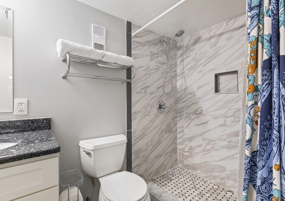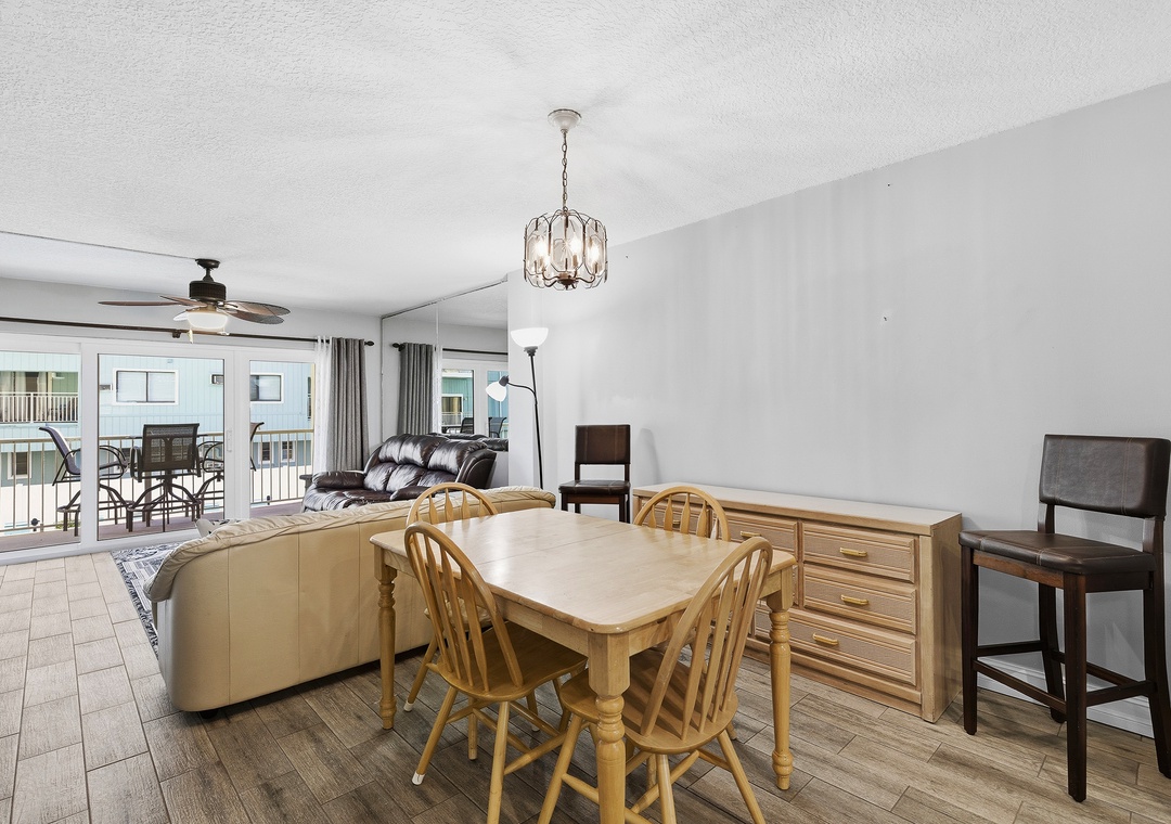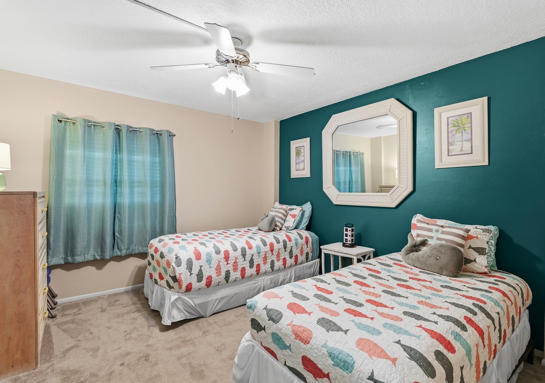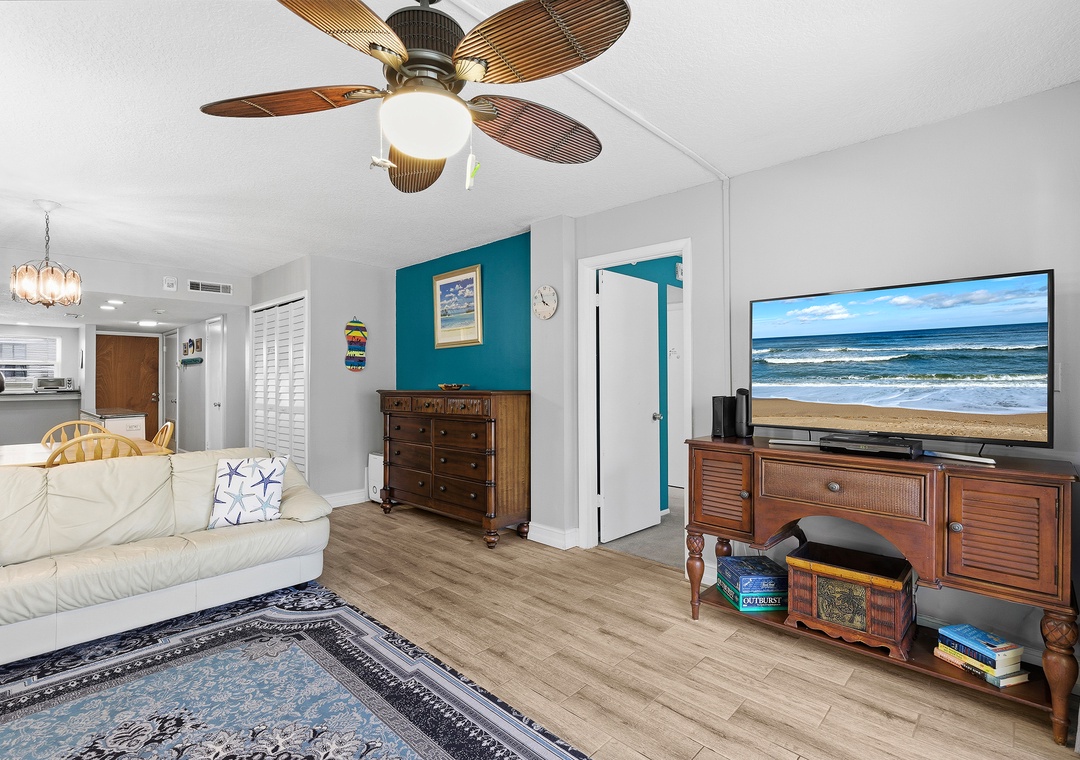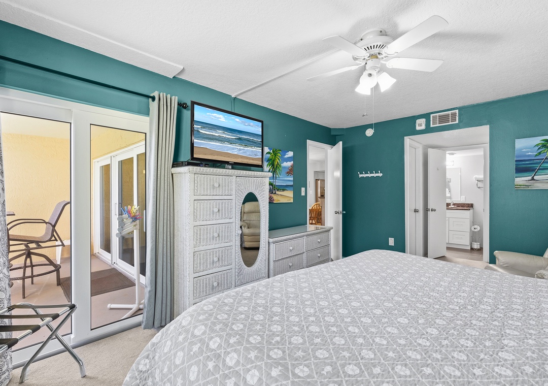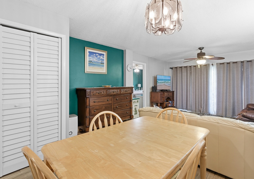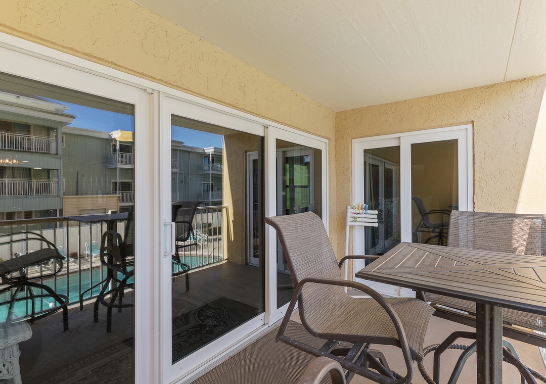 Welcome to Ponce de Leon Towers 207! This bright, easygoing second-floor condo in New Smyrna Beach is the perfect spot to settle in and enjoy beach life. With two bedrooms and two bathrooms, there’s room for everyone to relax. The primary bedroom features a king bed, a private ensuite with a walk-in shower, balcony access, and a window that looks straight out over the pool. Step onto the balcony for your morning coffee and catch a little sliver of ocean view—just enough to remind you you’re in an oceanfront complex. The kitchen window also has a partial ocean view. The guest bedroom offers two twin beds, and the guest bath includes a tub/shower combo that’s especially great for kids. A twin rollaway bed is also available, bringing the maximum occupancy to five guests.