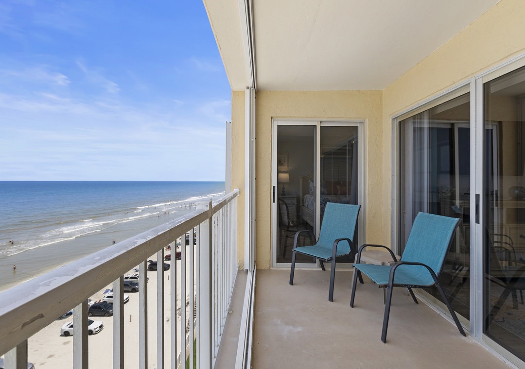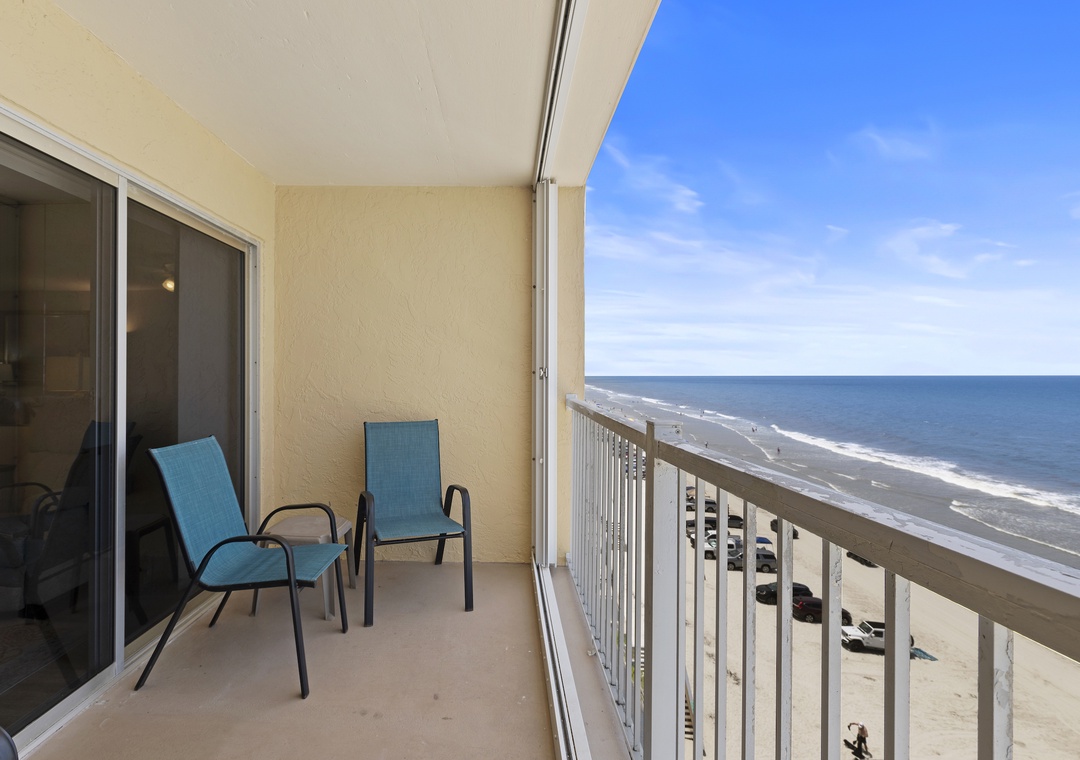 Venture out from the large sliding glass door when your soul craves the warmth of sunshine and the sound of crashing waves. The condo's balcony has a sweeping 7th-floor view of New Smyrna's driving beach. Relax in one of the four Adirondack chairs, take in the scenery, and congratulate yourself on securing the best view of New Smyrna Beach!
