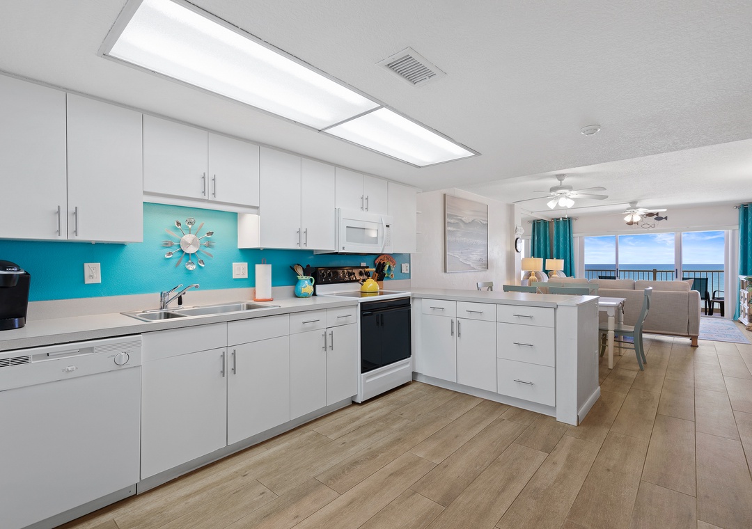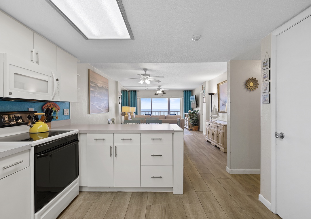 Natural wood-tile flooring, light walls, and an inviting atmosphere will immediately soothe your soul upon walking in. While the condo has a home-like presence, its relaxed, beachy ambiance whispers of the beauty surrounding you.