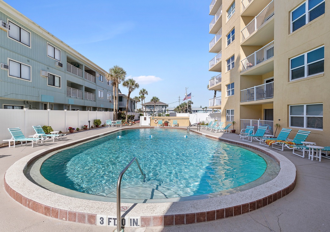 Ponce de Leon Towers is an oceanfront complex on New Smyrna's driving shore. Guests have access to a seasonally heated pool, direct beach access, shuffleboard courts, a community room with a pool table, and plenty of on-site parking. The complex is within walking distance to multiple restaurants and less than 2 miles from the popular Flagler Avenue and the area's main grocery store.