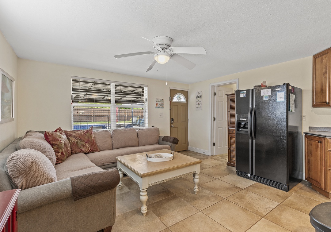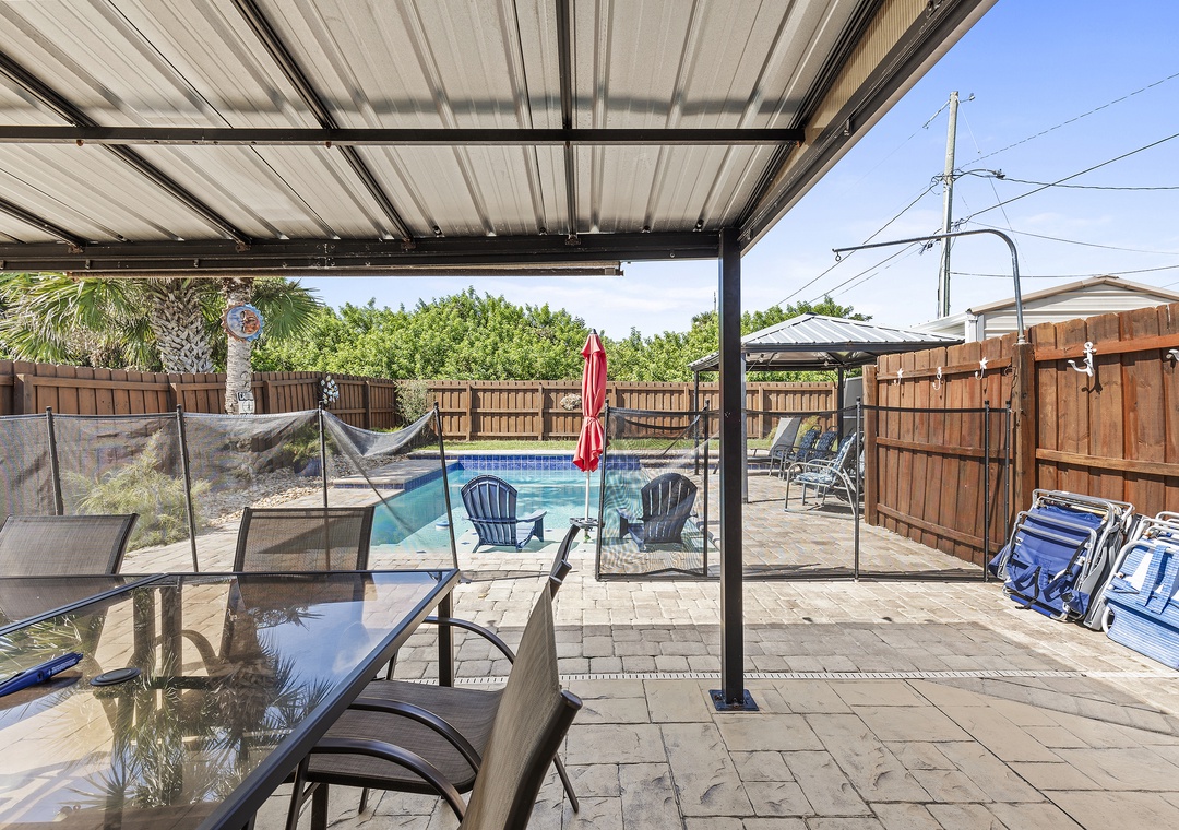As part of the Grand Oasis triplex, Poolside Oasis is an adorable, pet-friendly property that has a primary bedroom with a king and a guest bedroom with a twin over a full bunk bed, a one-bath main area with a full kitchen, AND a separate studio we call the "Mini Oasis", a separate entrance apartment, complete with kitchenette, queen bed, and private bath. This home can accommodate 6 guests comfortably. Not only is there a private pool and patio surrounded by a privacy fence for you and your family to enjoy, but there is also a communal screened-in side porch to relax in as well. Your fenced-in back pool area provides a place for Fido to safely wander outside as well. There is also a washer and dryer conveniently located inside the property! Come start making memories that will last a lifetime at Poolside Oasis.
