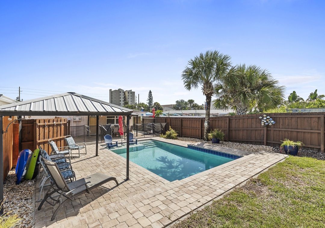 The Poolside Oasis was great for us and our dog as we stayed in New Smyrna Beach for a week. It was right across the street from the beach so I driving at all. The fenced in backyard provided a ton of space for our dog to get energy out. The pool was super private and had all the area we needed.
