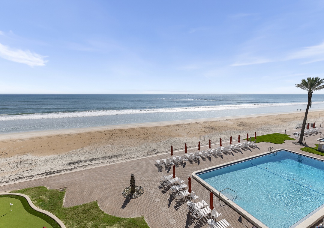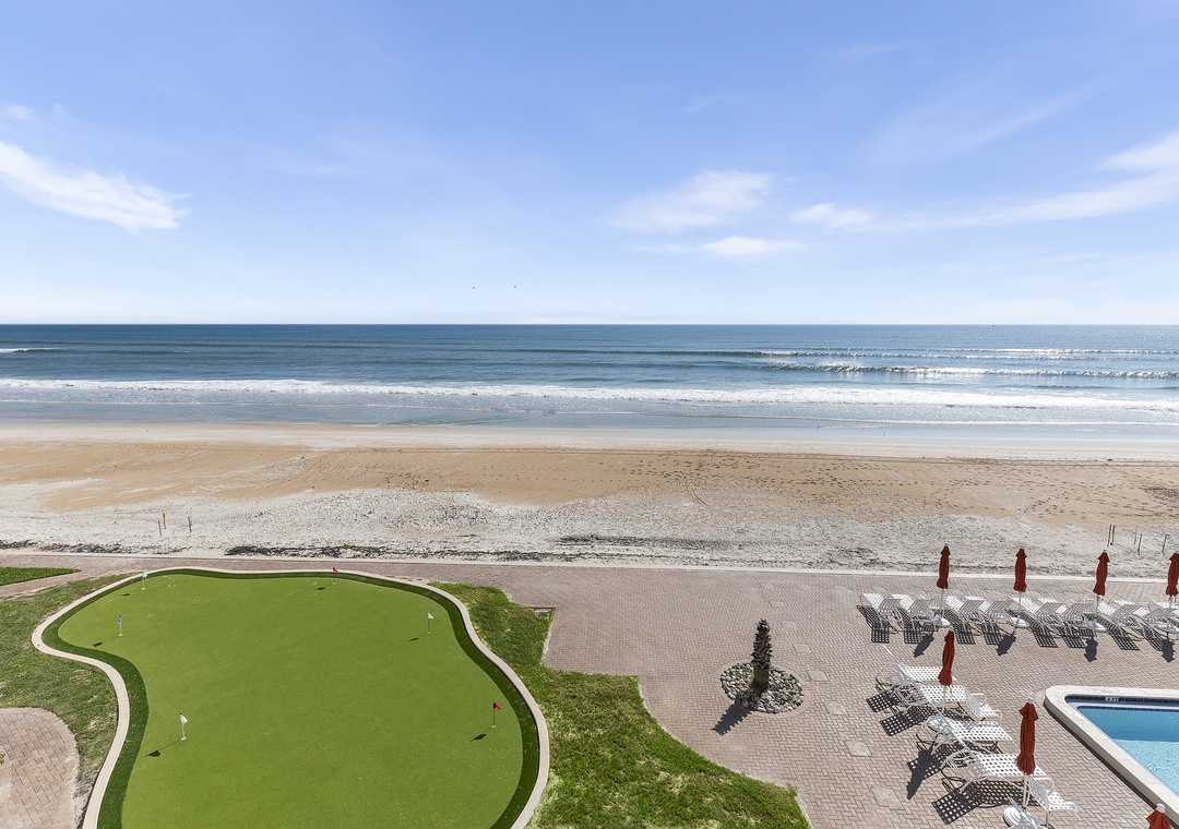 At The Sandpiper, endless family fun awaits just steps from your door. Challenge each other on the putting green, shuffleboard, pickleball, or tennis courts, then head inside to the expansive recreation room where pool, ping pong, foosball, and card tables promise hours of entertainment. As the perfect finishing touch, soak in breathtaking ocean views from the oversized balcony—a serene spot for morning coffee or evening sunsets.