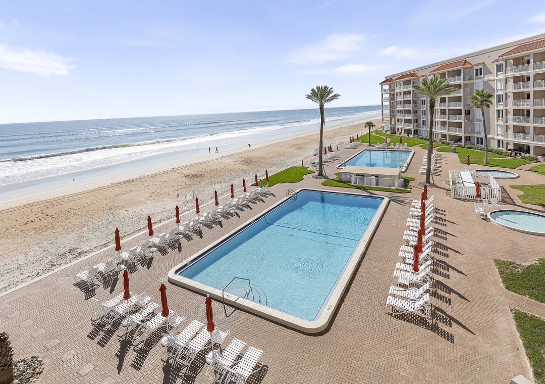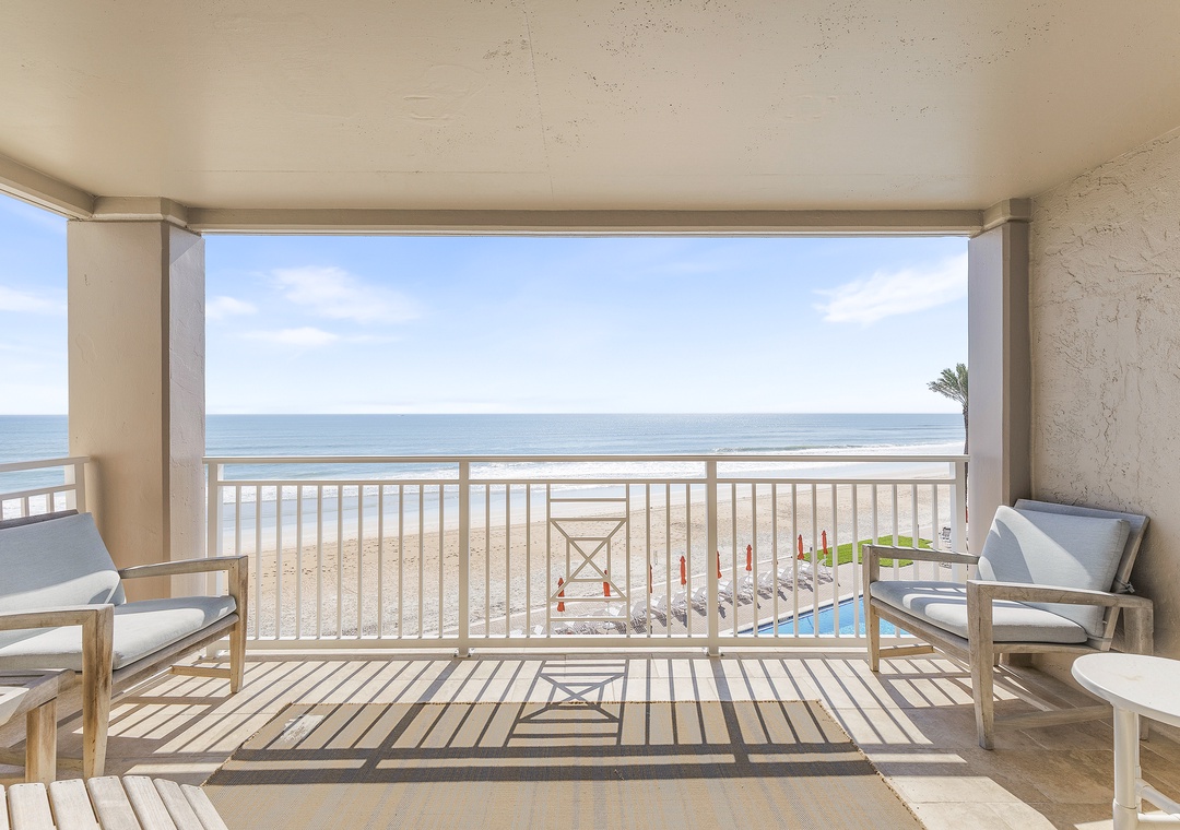 * Large Balconies with Views of Two Pools and the Beach