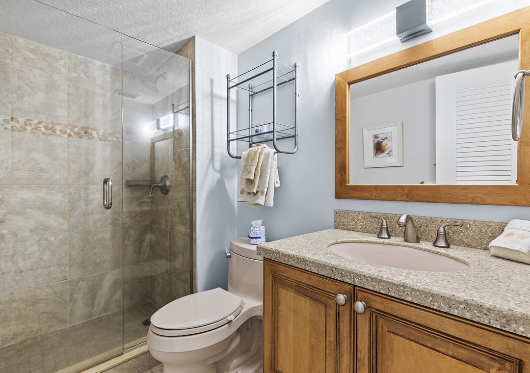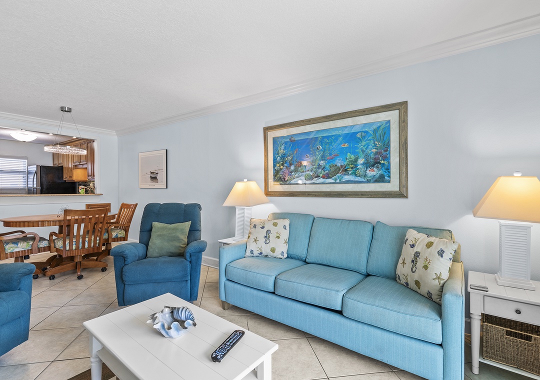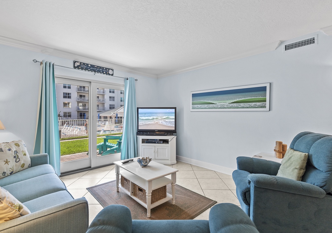 The primary bedroom includes a queen bed and an ensuite bathroom, providing a peaceful retreat after time in the sun. The guest bedroom features two twin beds, making it perfect for family or friends. The living room includes a sleeper sofa to comfortably accommodate additional guests. Sea Coast Gardens II offers private beach access, so you’re just steps from the sand and surf. Whether you’re spending your days poolside or enjoying the ocean breeze, this condo delivers a convenient and welcoming New Smyrna Beach getaway.