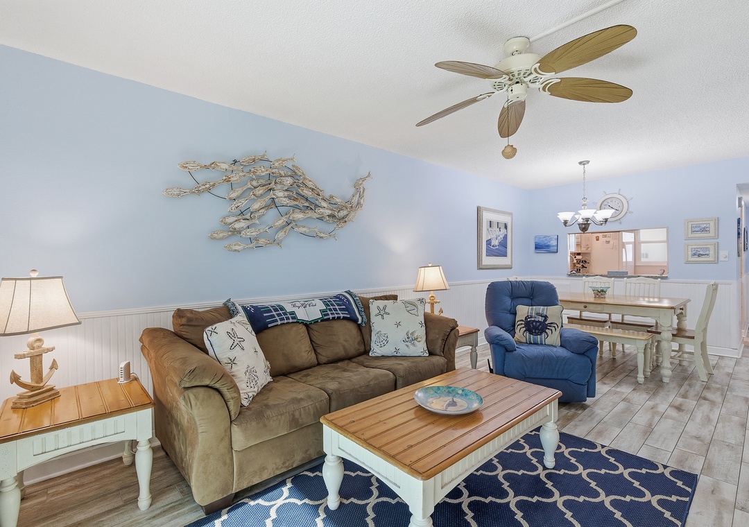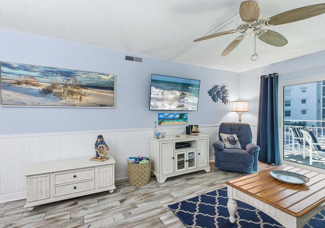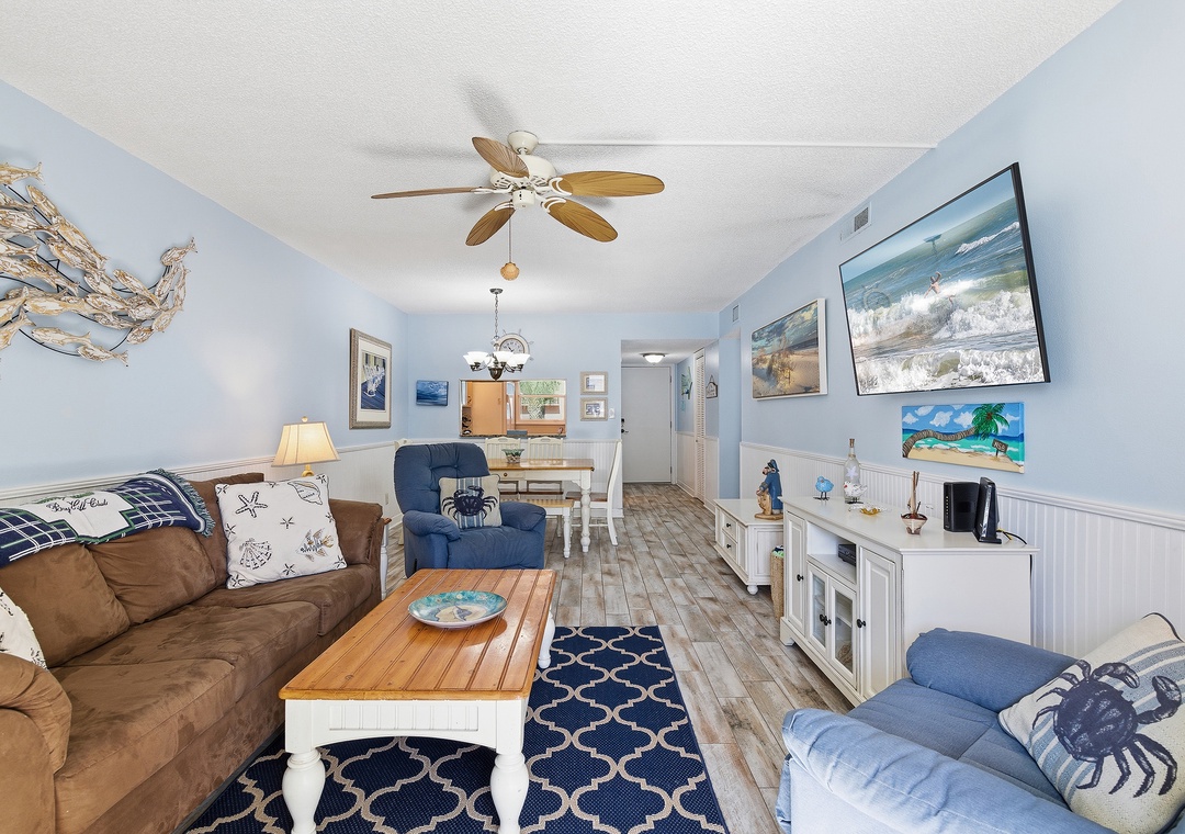 This inviting two-bedroom, two-bathroom condo is perfectly situated on the non-driving section of New Smyrna Beach, offering a relaxing coastal escape with all the comforts of home. Inside, you’ll find a bright, beach-inspired living space designed for unwinding after a day in the sun, with plenty of seating and an open layout that flows easily for gathering and relaxing. Step out onto your private balcony, where you can enjoy peaceful views of the ocean and pool – an ideal spot for morning coffee or enjoying evening breezes.