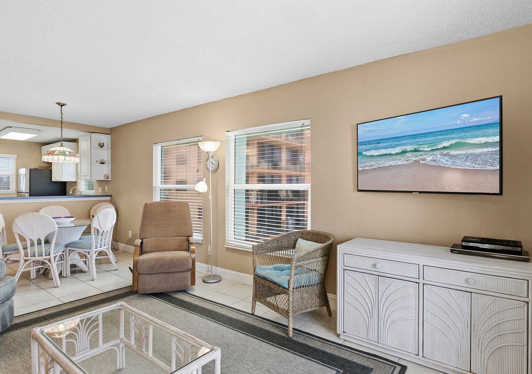 Enjoy a spacious 2-bedroom, 2-bathroom condo just steps from beach access. The master bedroom features a cozy queen bed, while the guest bedroom offers a comfortable full bed. Additional sleeping space is available with a sleeper sofa in the living room. The condo boasts a roomy kitchen and dining area, perfect for feeling right at home. Relax in the inviting living room or take advantage of the nearby beach for the perfect getaway.