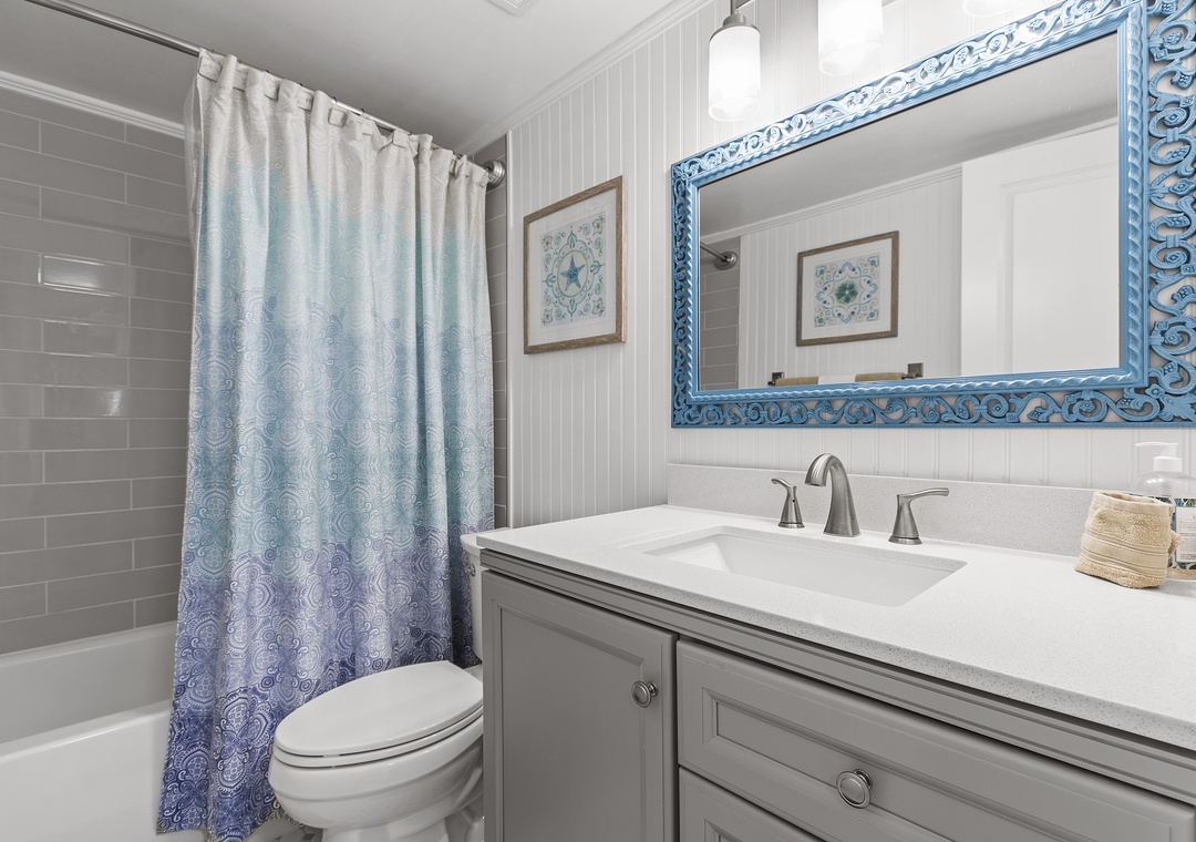 Welcome to Sea Coast Gardens II 314, a two-bedroom, two-bathroom seaside escape that features top-notch amenities and a beautiful view of the water. Whether you relax to the sound of the ocean waves on its third-floor balcony or kick back indoors, R and R is practically guaranteed during your stay. At the end of a fun-filled day, you'll be eager to retire to the primary bedroom. This suite holds a king bed, Smart TV, and adjoining bathroom. The rest of your crew will equally enjoy their stay in the second bedroom. A twin bed, a full bed, and a Smart TV furnish the space. Nearby, guests can use the lovely second bathroom which has a subway-tiled bathtub and plenty of bath towels.