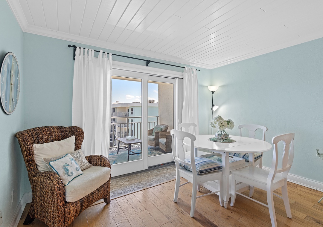 As soon as you walk into this condo, you instantly feel relaxed and welcomed. It is beautifully decorated in beach decor throughout, and every room is pristine! The patio has a fantastic view of the pools and ocean with plenty of seating outside for a family of four. My husband and I stayed 3 nights and it was absolutely perfect!! A great condo inside and out with easy access to the pools and the beach. The complex was quiet and reserved, therefore making our getaway that much more peaceful. We enjoyed ourselves and didn't want to leave! I highly recommend this beautiful condo for families with children of all ages, a romantic getaway, or a girls trip. We hope to vacation in this condo again in the future for a longer stay and with our kids so they have the opportunity to enjoy it as much as we did!- Reviewed On: 4/14/2016