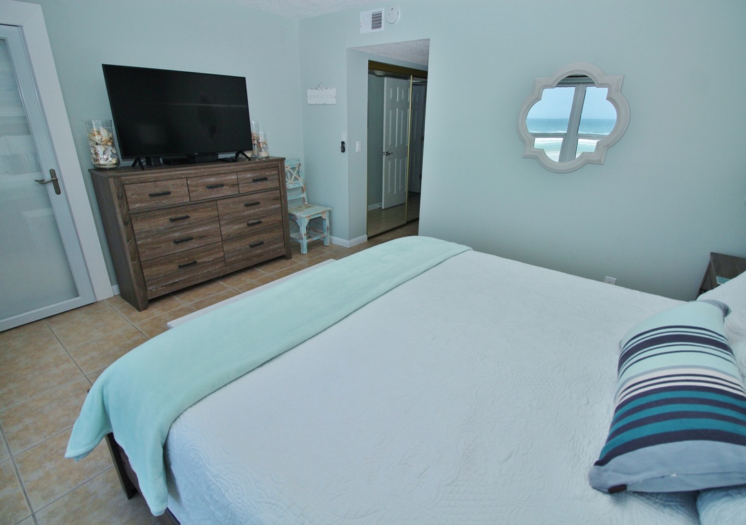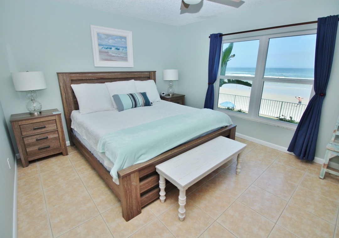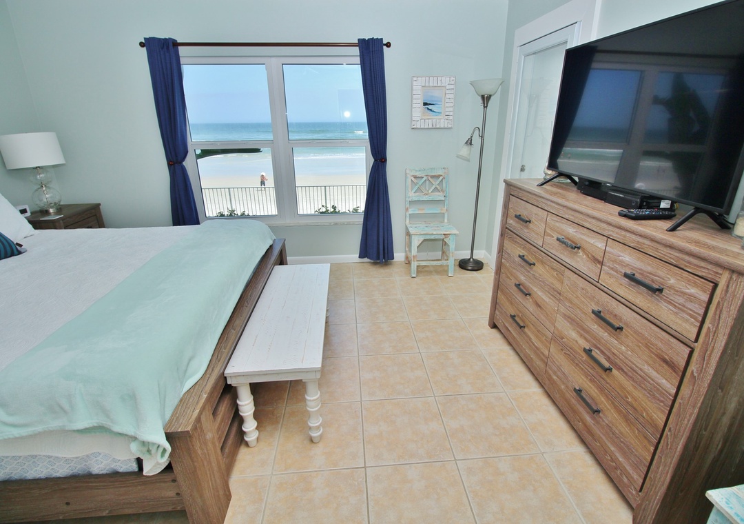 What a beautifully decorated condo right on the water with wide sweeping views of waves breaking on the sand. We loved the ocean view and listening to the waves just outside our window! Lots of thoughtful amenities including board games, beach toys and everything you would need for light cooking. Very comfortable beds for a great night sleep. Great pools for swimming or lounging and nice shuffle board courts. Lovely beach for taking long walks. We rode bikes on the beach down to Flagler Ave with it’s interesting shops and restaurants. What a charming, colorful, small beach town. Lots of friendly people. Being from California we especially enjoyed playing in the warm ocean water. A couple restaurants, supermarket and ice cream shop are just ½ a block away. We loved being on New Smyrna Beach Island, surrounded by water.- Reviewed On: 5/11/2019
