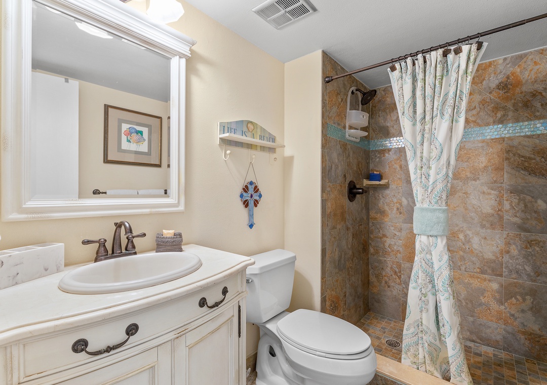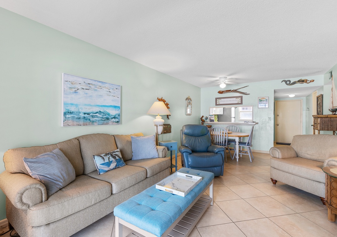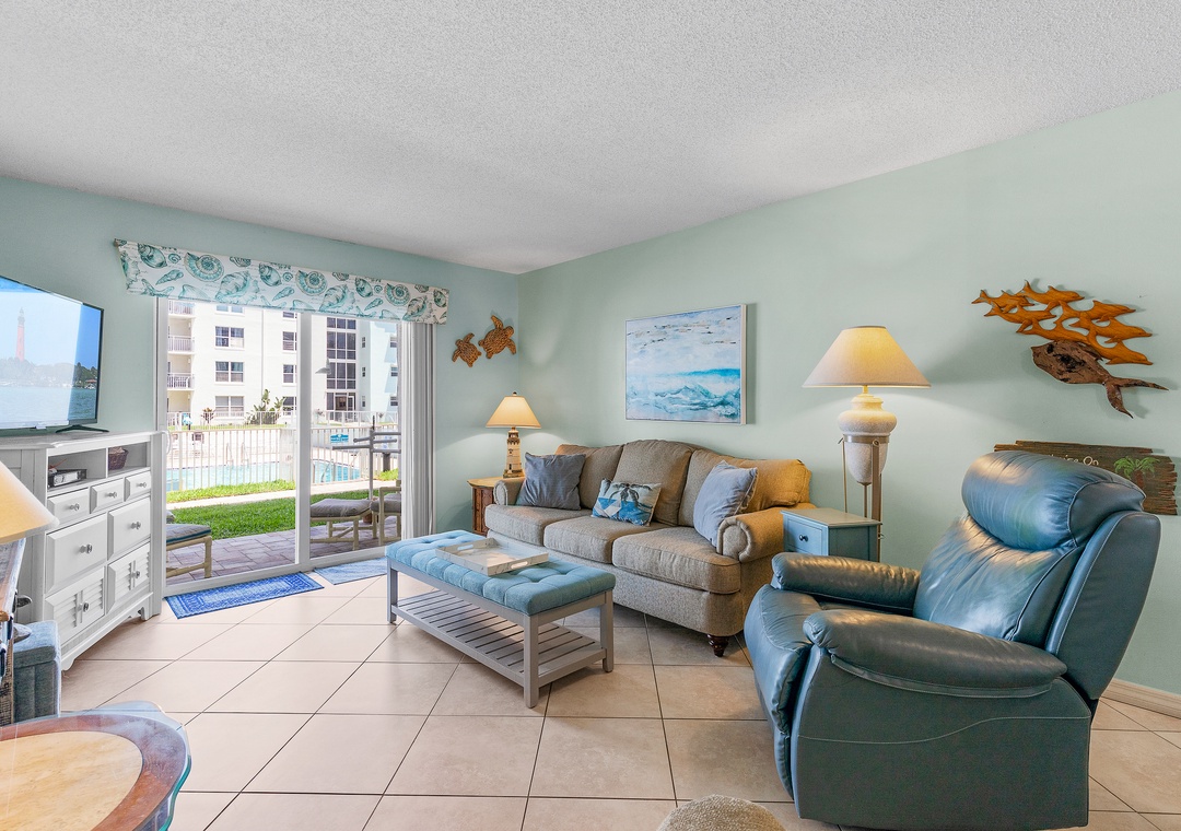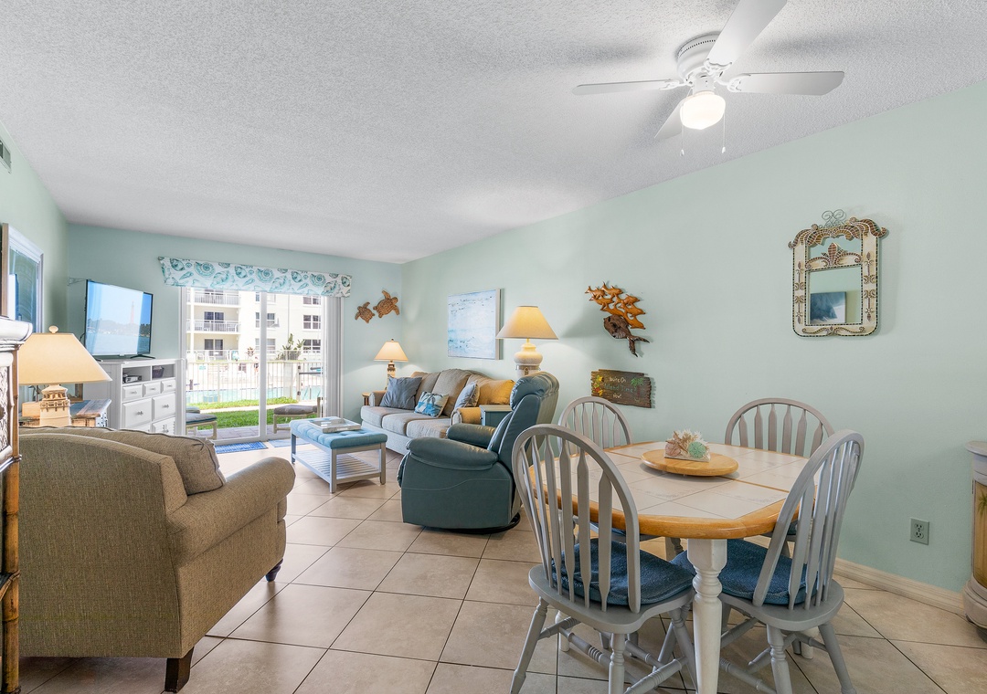 Ground floor unit, pool side and close to beach. Tropical décor with kitchen open to Family room/dining great room. Master bath recently updated and master has Tommy Bahama furnishings. Kids room is very bright and includes use of surfboard and beach chairs. Dining table has extra leaf to extend.