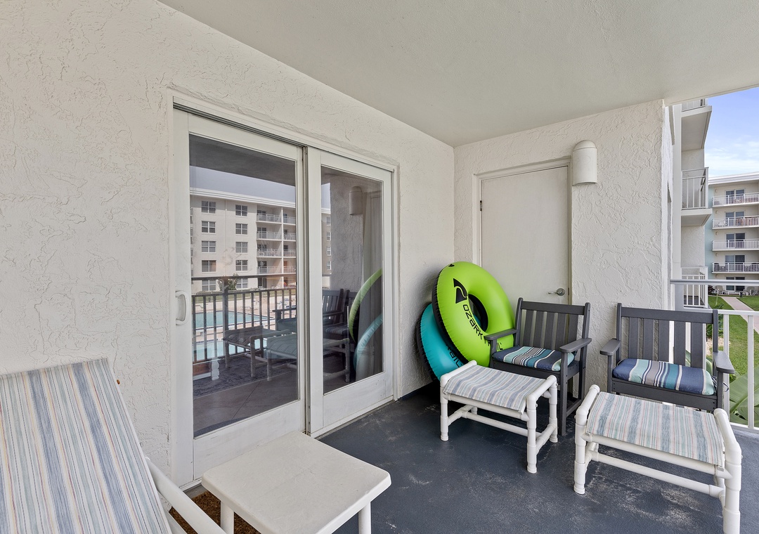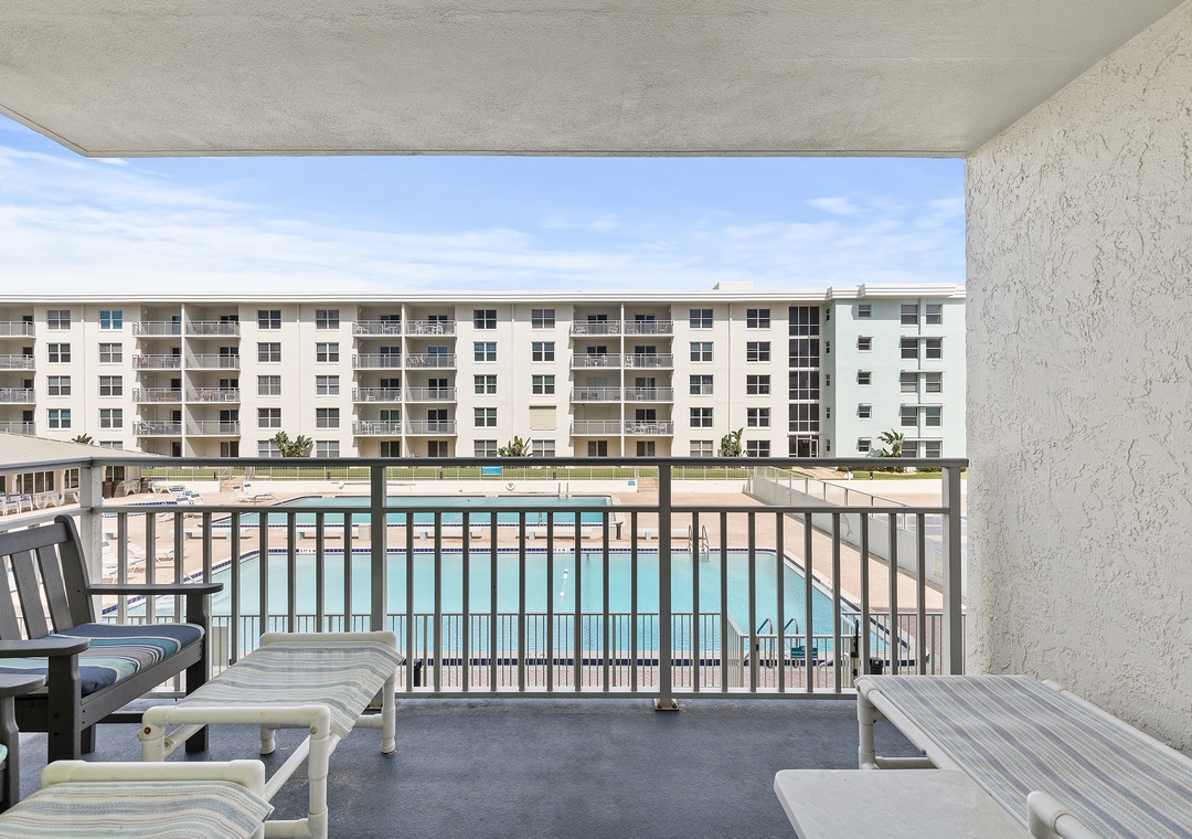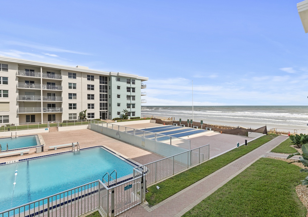 We had a fabulous stay here. Great location on new Smyrna beach on the No-drive section of the beach (a must for us with small kids). The condo is on the second floor overlooking the pool with a side view to the ocean. When on the balcony you got the full view of the beach and pool. The location in the complex was very accessible to the assigned parking spot in the parking lot, to the shared laundry, and for getting down to the pool and beach. The condo was nicely updated with comfortable furnishings and beds. We would definitely stay here again.- Reviewed On: 4/23/2024