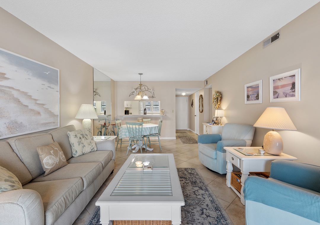 Absolutely loved and enjoyed our stay here! The unit is exactly as pictured. Kitchen had everything you could possibly need and was extremely clean and not cluttered. Dining and living room were cozy and clean as well. Rooms were a good size for 4 adults (my husband and I and my 19 year old son and his best friend). Beds in the rooms were super comfortable and the property was so quiet. I could hear my son and his friend down the hall but I didn't hear neighbors upstairs, downstairs, or next to us. Bathrooms were clean, water pressure was good. A/C worked well. I really like the assigned parking - it was a perfect spot in relation to our unit on the second floor. Unit was right on the beach and a short walk down from the unit. Would love to stay here again and just sit and relax!- Reviewed On: 5/13/2024