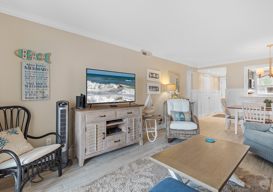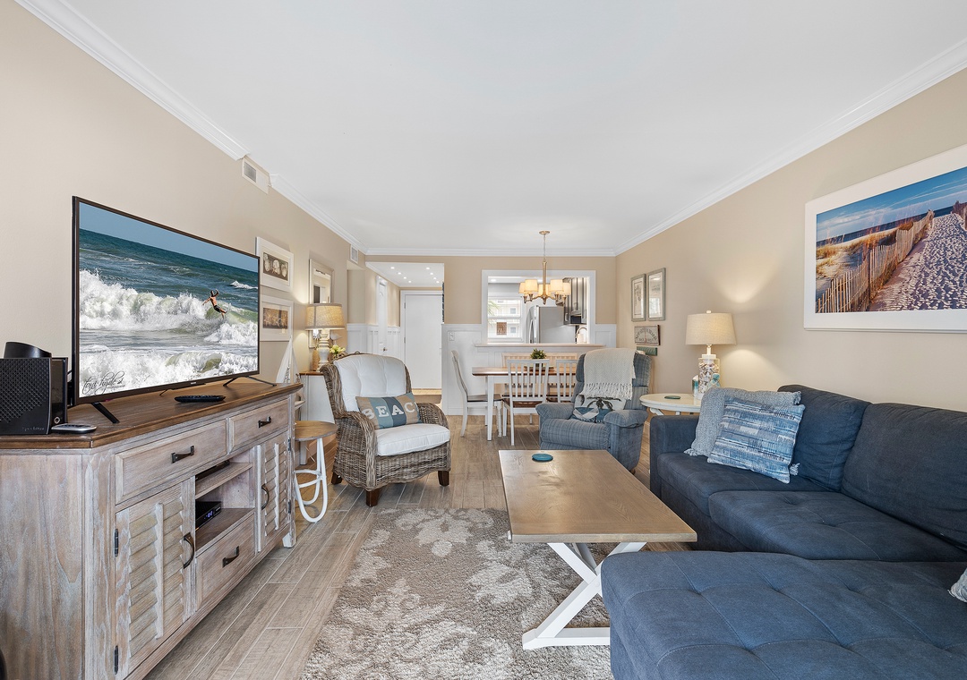 Welcome to Sea Coast Gardens III 209! Enjoy breathtaking sunrises over the Atlantic Ocean right from your second-floor balcony. This charming 2-bedroom, 2-bathroom condo accommodates up to 6 guests. Relax in the cozy living room, equipped with a large flat-screen TV perfect for unwinding with your favorite shows amidst stunning ocean views that keep visitors returning year after year.