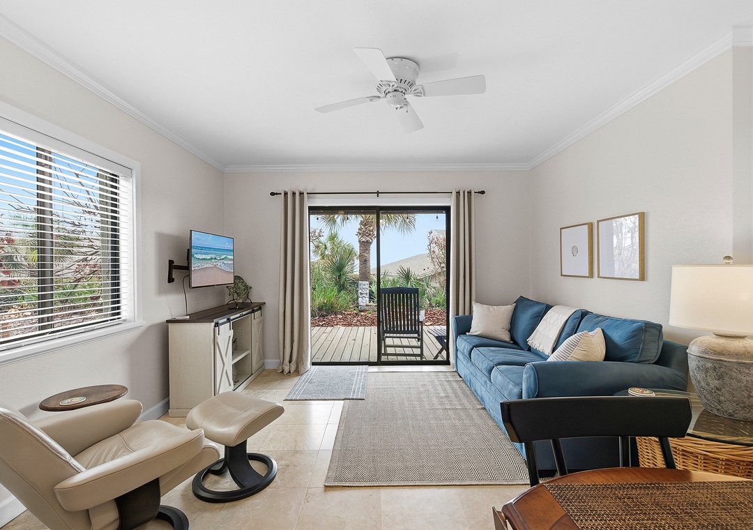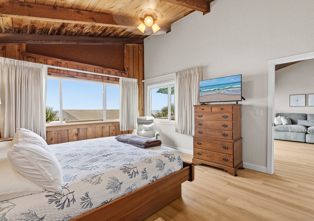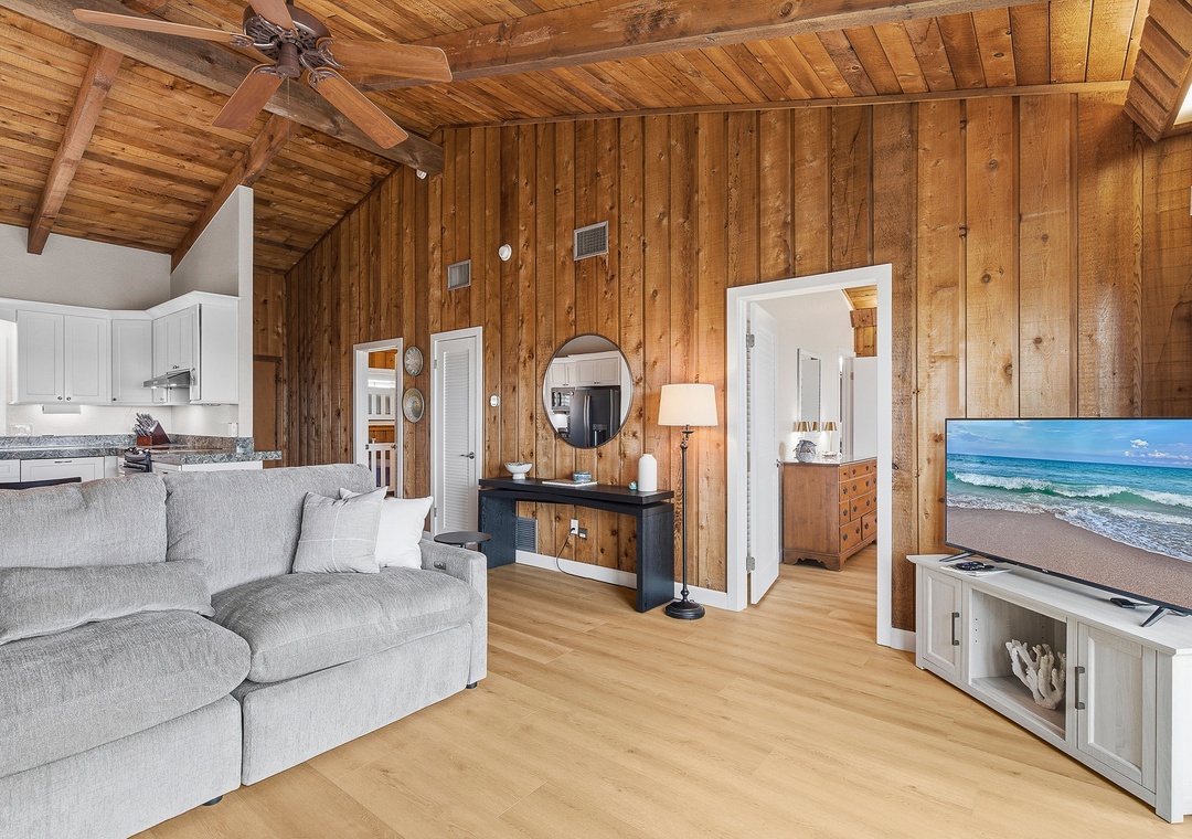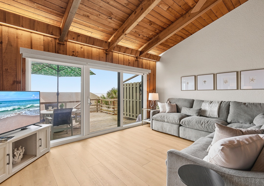 At Sea Dunes Nautilus B7, you’ll experience the true feeling of living on the beach. This charming beach bungalow offers panoramic views of the sea dunes and direct beachfront living, creating a very private, peaceful escape. A pool awaits at the bottom of the stairs, along with an outdoor shower and two levels of decks to soak in the ocean breeze. Fire up the gas grill for outdoor cooking, or simply sit back and enjoy the sound of the waves.
