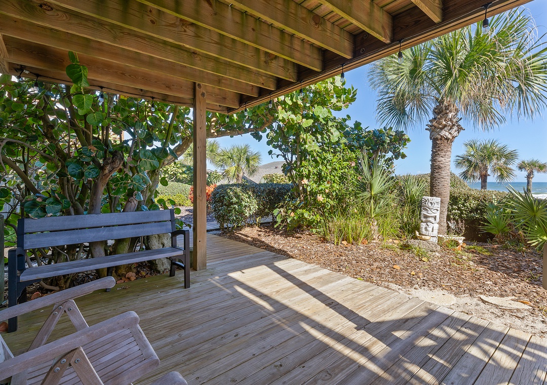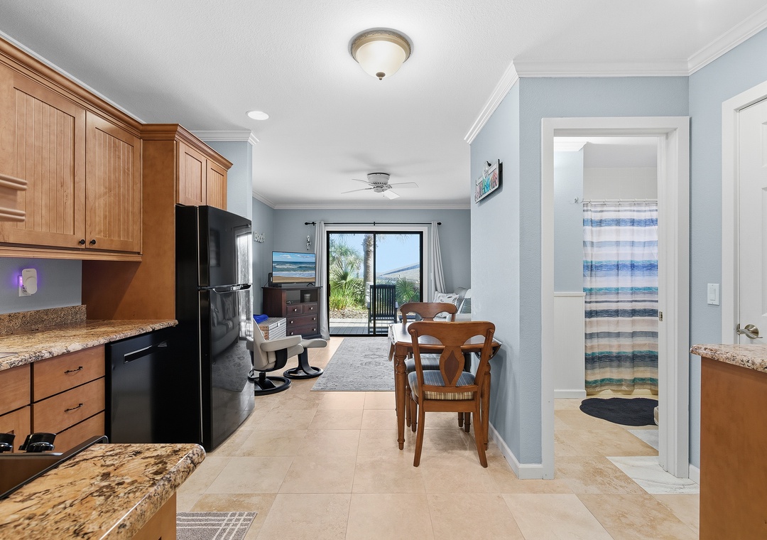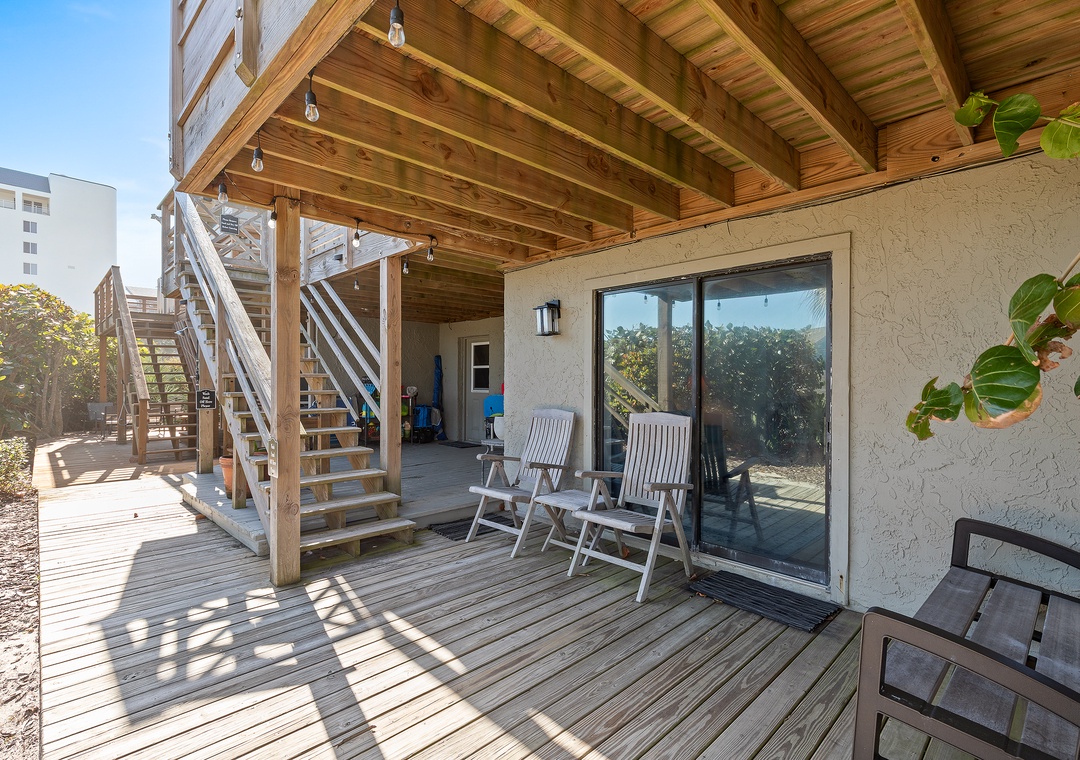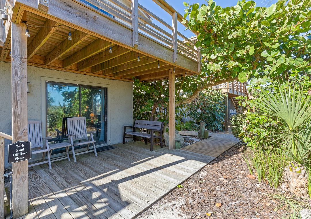 Inside, the space has been thoughtfully updated and features a comfortable open living area, a private bedroom and bath, and all the essentials for a relaxing beach getaway. With its own private entrance, fully renovated kitchen and bathroom, and complete separation from the upstairs unit, this apartment offers the comfort and independence of a standalone stay—ideal for extended family, visiting guests, or those seeking a quiet retreat of their own.