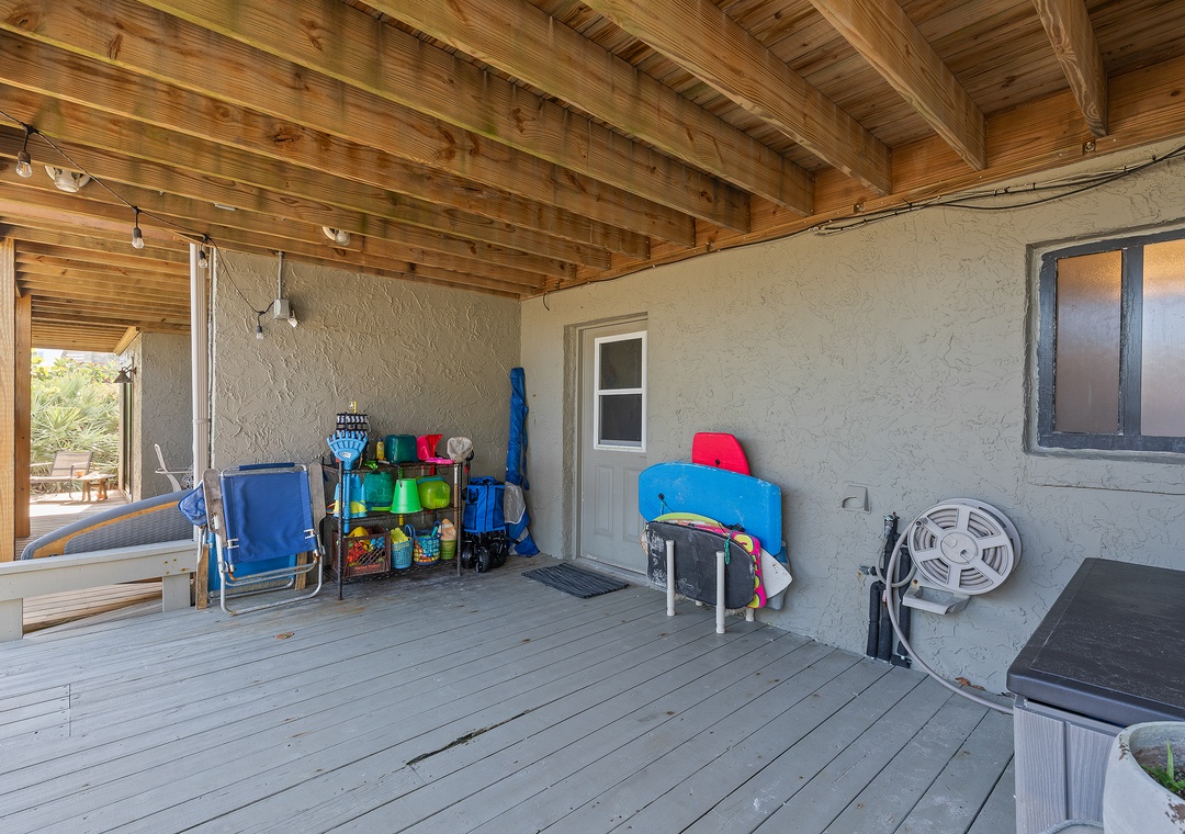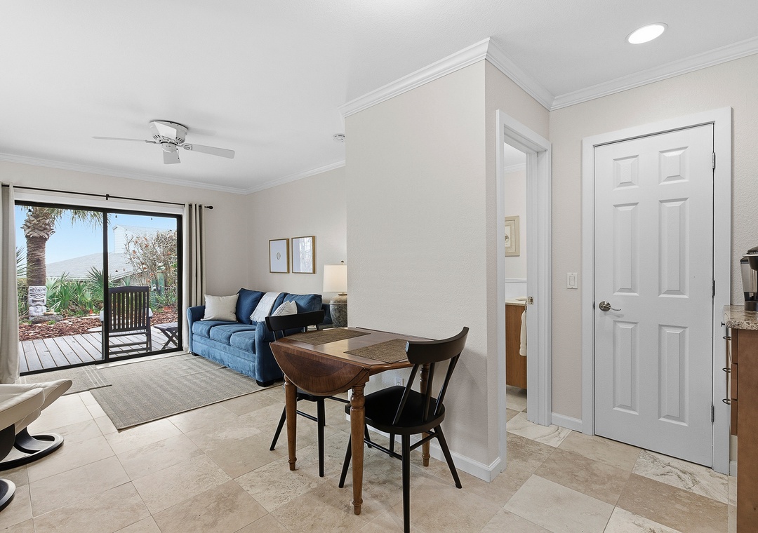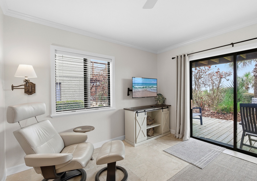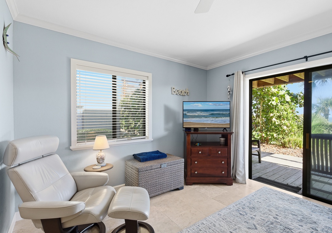 Inside, the space has been thoughtfully updated and features a comfortable open living area, a private bedroom and bath, and all the essentials for a relaxing beach getaway. With its own private entrance, fully renovated kitchen and bathroom, and complete separation from the upstairs unit, this apartment offers the comfort and independence of a standalone stay—ideal for extended family, visiting guests, or those seeking a quiet retreat of their own.