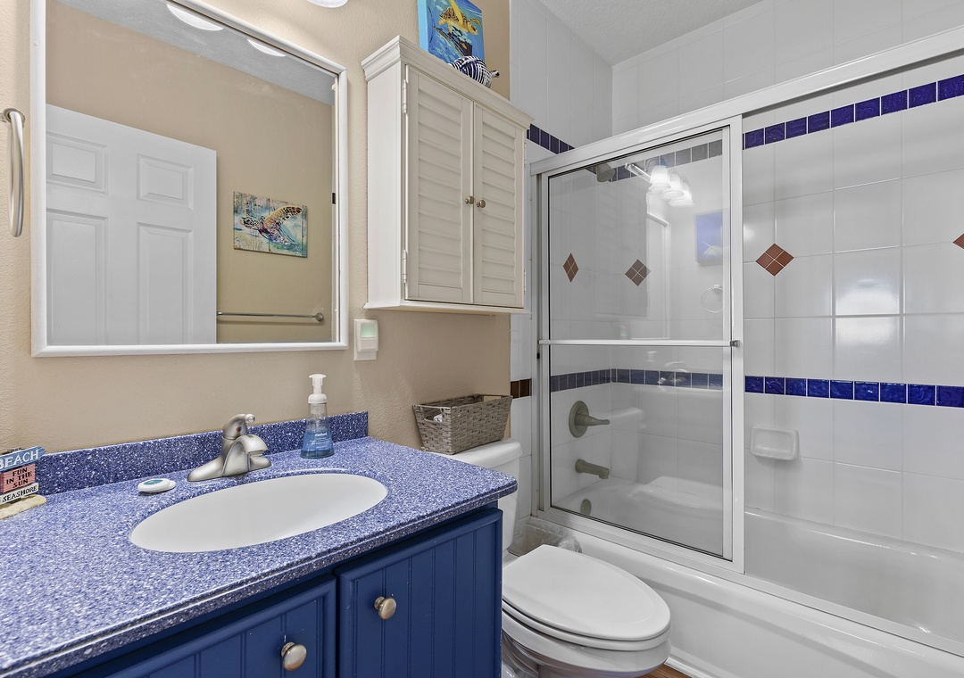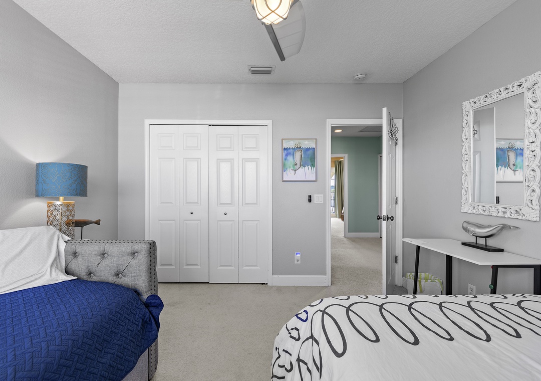 The rest of your group will claim the second and third bedroom as their own. The second bedroom holds a queen bed and a flat-screen TV. The third bedroom sleeps four with its queen and twin trundle bed. Guests are provided a nearby bathroom with a standard bathtub and plenty of towels.