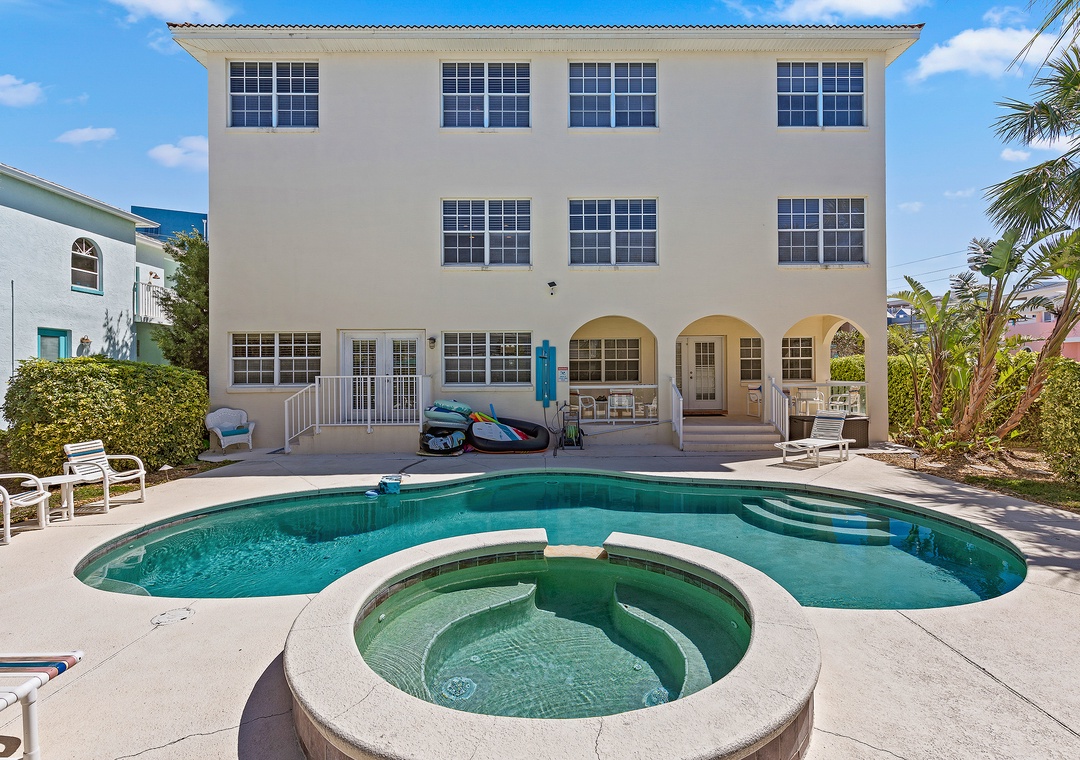With the beach nearby and a pool in the backyard, your group will find themselves in a blissful rotation. Kick back in a beach lounger and relax in the lush oasis. Guests can unwind in the hot tub and swim in the pool. The pool area is practically private; it is only shared with the next-door townhome and its guests. When you're ready to return to the shore, swing by the garage for beach chairs, a beach cart, toys, and a cooler.