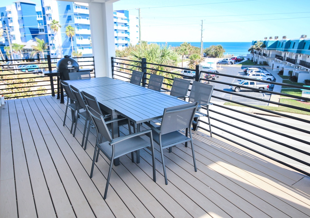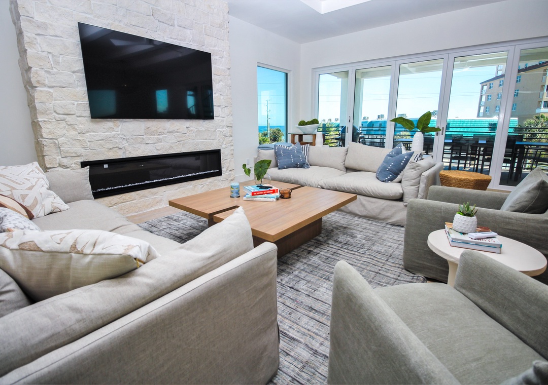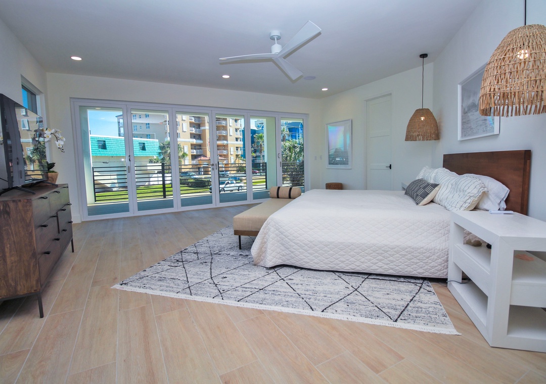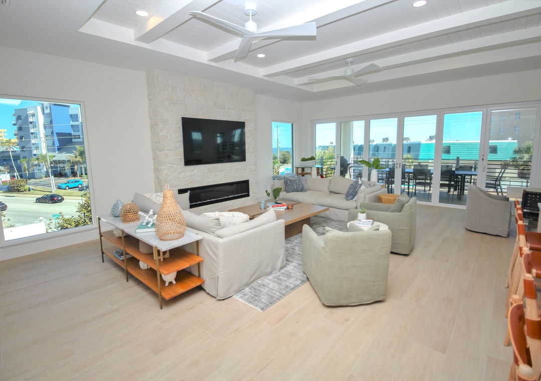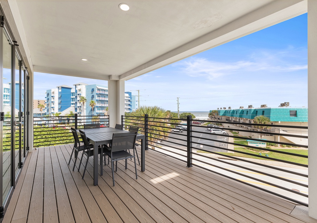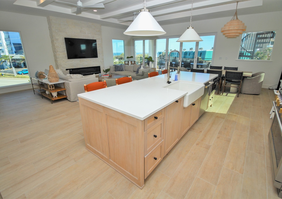 On the second floor, you'll find three beautifully decorated bedrooms, including a lavish primary suite with a king bed, private balcony, wet bar, and a spa-like bathroom. The main living area on the third floor boasts a stunning kitchen with professional appliances and ocean views, a dining table for 8, and a cozy living room with a 75” Smart TV. Step outside to the crow’s nest for breathtaking Atlantic Ocean views, especially during sunrise. Sea View Play is fully equipped with everything you need for a comfortable stay, including WiFi, Smart TVs, a grill, and parking for up to 6 vehicles. Plus, you're just a short walk from the vibrant Flagler Avenue.