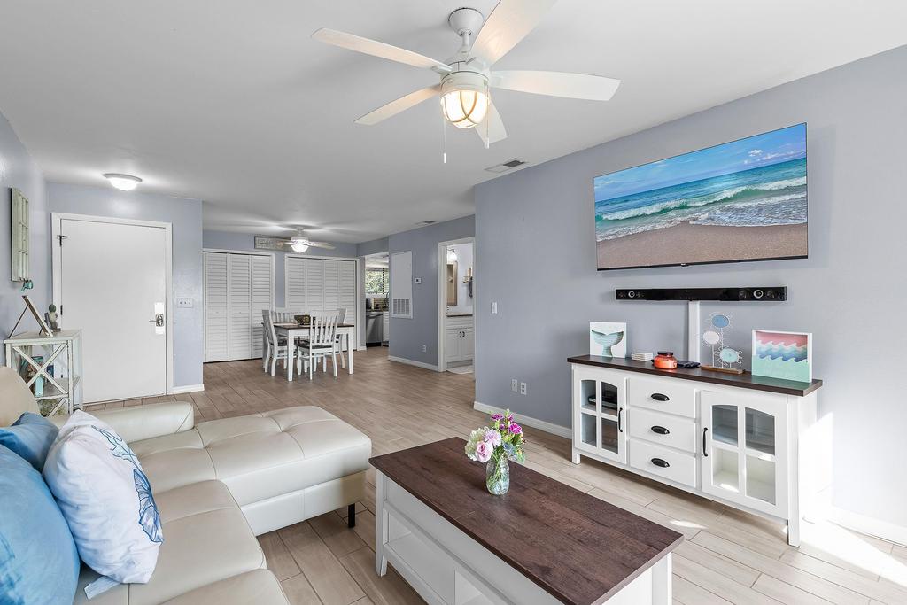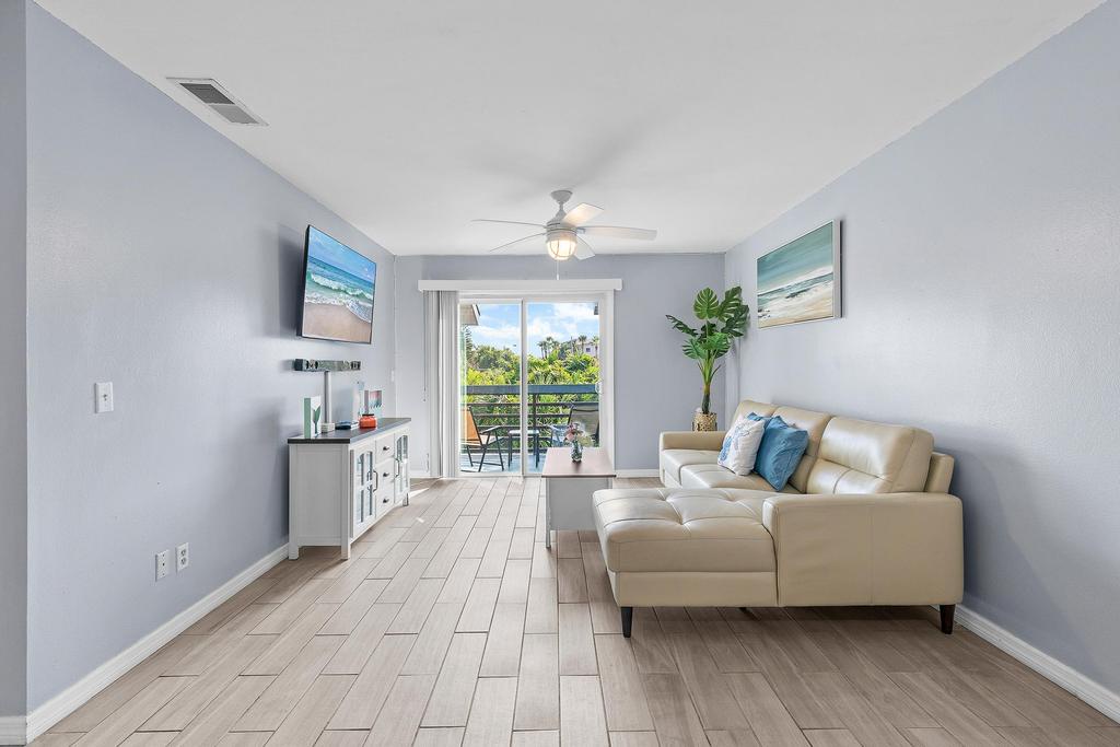 Inside, you'll find a comfortable and thoughtfully furnished space with everything you need for a relaxing stay. The well-stocked kitchen is equipped for cooking your favorite meals, and the open living area features smart TVs and complimentary WiFi for your convenience. Step out onto your private balcony to enjoy the ocean breeze and unwind after a day of fun in the sun. Whether you're here for a weekend getaway or a longer vacation, this condo offers the comfort and location to make the most of your New Smyrna Beach experience.