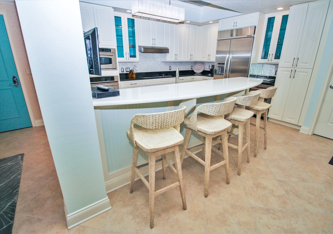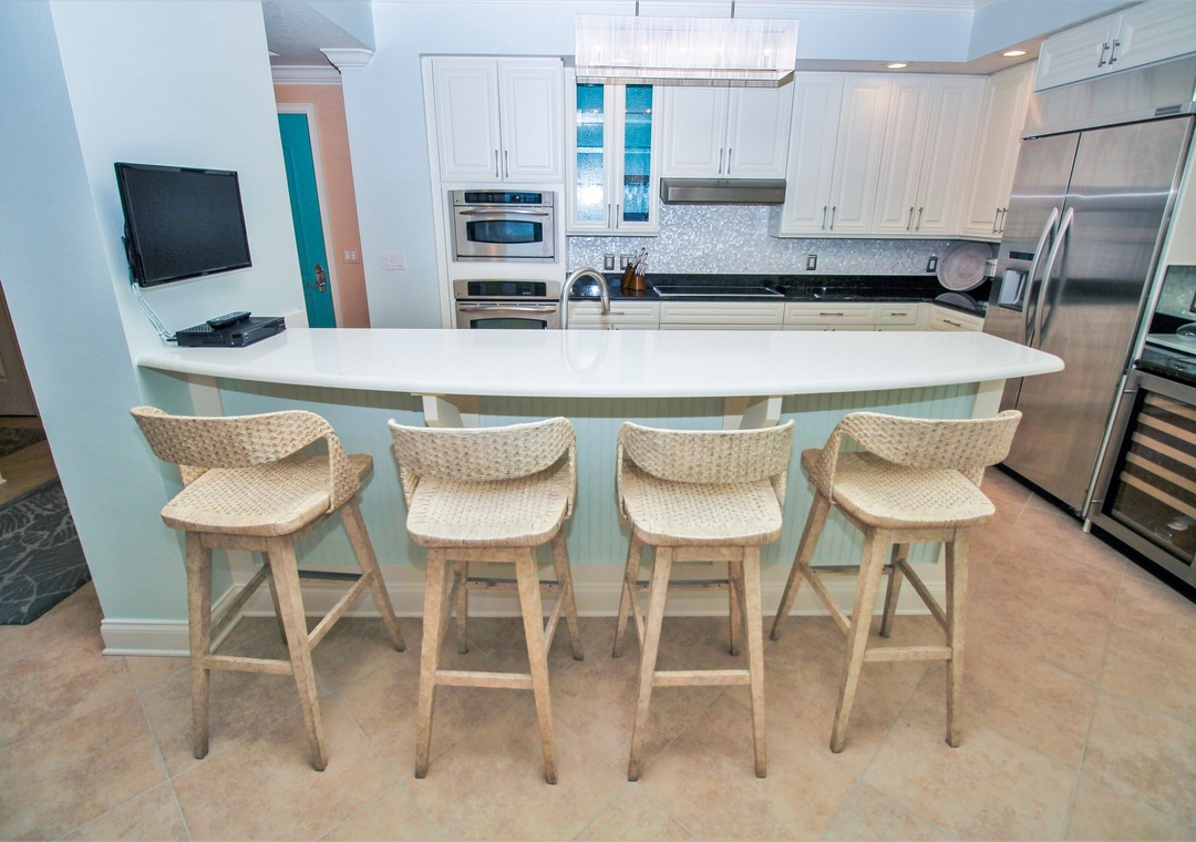 Wake up to breathtaking ocean views at Seacrest 804, a stunning 2-bedroom, 2.5-bathroom condo located directly on the non-driving beach in New Smyrna Beach. This upscale retreat features a bright and airy living space with elegant coastal décor, and whether you're stretched out on the balcony, curled up on the couch, or waking up in bed, this condo ensures the waves are always in full view. A full kitchen equipped for your stay boasts high-end features; granite countertops, stainless steel appliances, a double oven, and even a wine cooler.