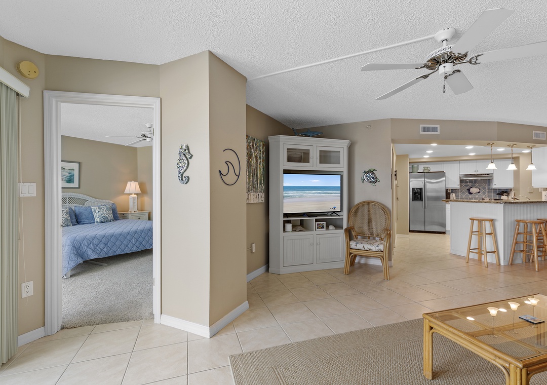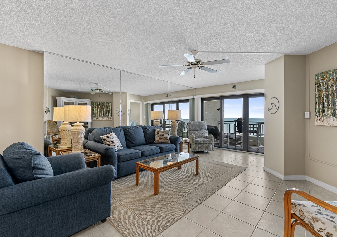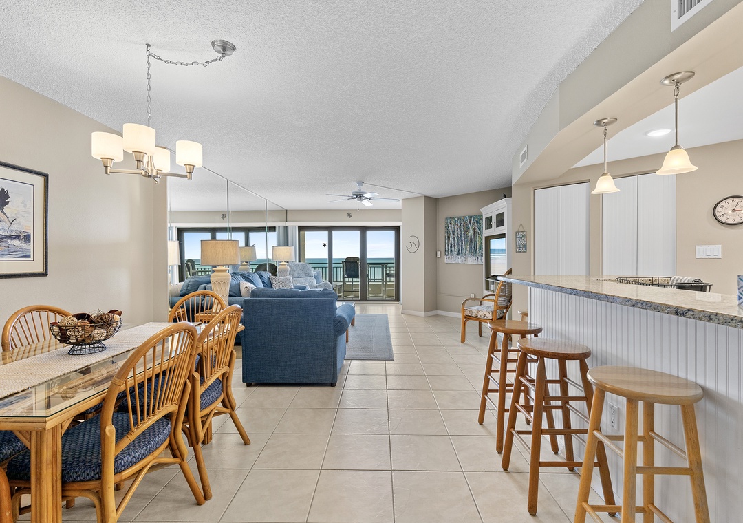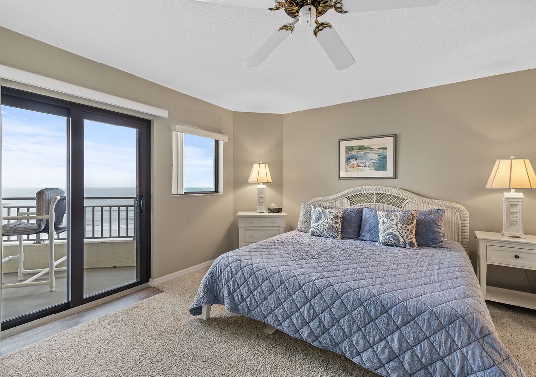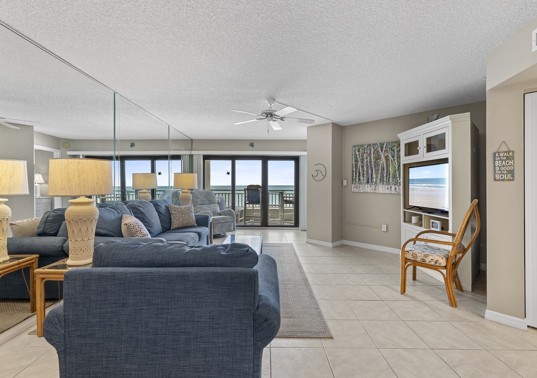 This recently remodeled Seascape Towers 524 is a gorgeous 2/2 beachfront condo that offers a cool beachy vibe and amazing floor-to-ceiling panoramic views of New Smyrna Beach! This vacation getaway is located in Seascape Towers, one of the premiere facilities in NSB. Seascape has top-notch amenities including, a sauna, a seasonally heated pool, secured underground parking, and a nearly private beach experience. Enjoy the ocean views from the living room, master bedroom, and balcony! The primary bedroom has a king bed, and the guest bedroom has 2 twin beds, making this condo sleep 4. After a long day out on the beach, relax on the couch and watch your favorite movie with your loved ones, or step outside to the expansive balcony where you can sit and enjoy the view of the ocean. Come make memories at Seascape Towers 524!