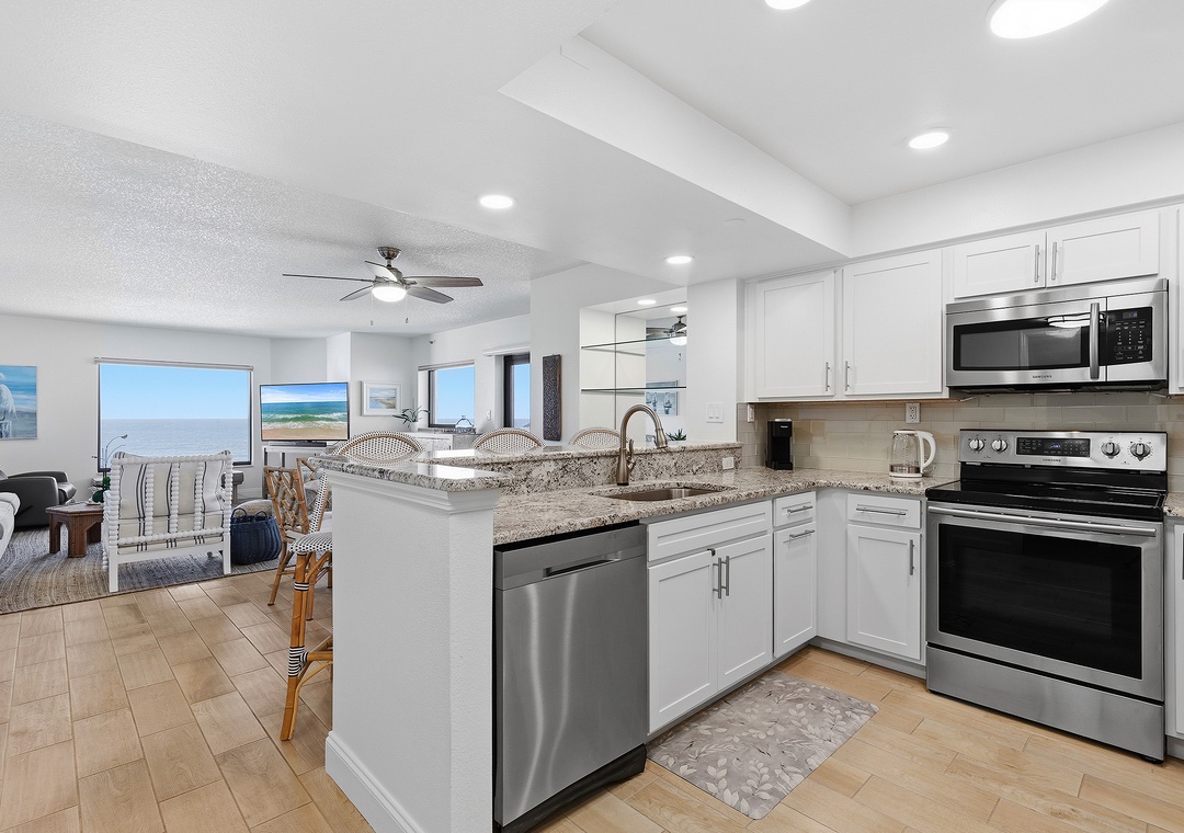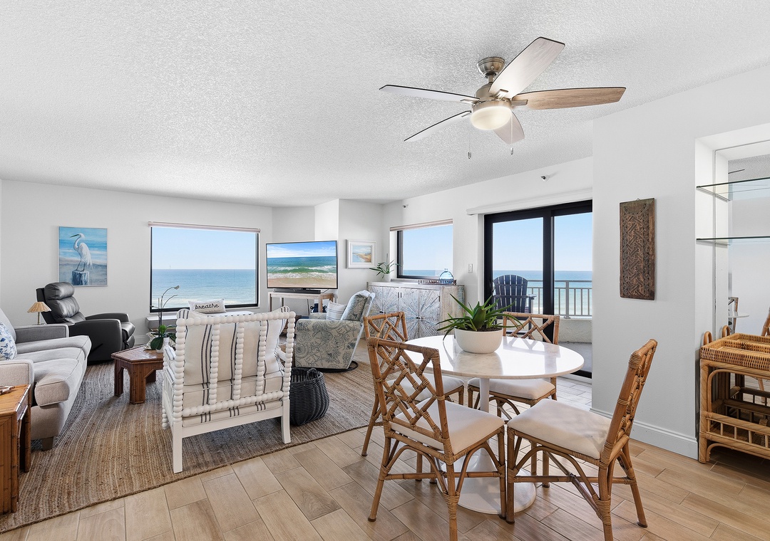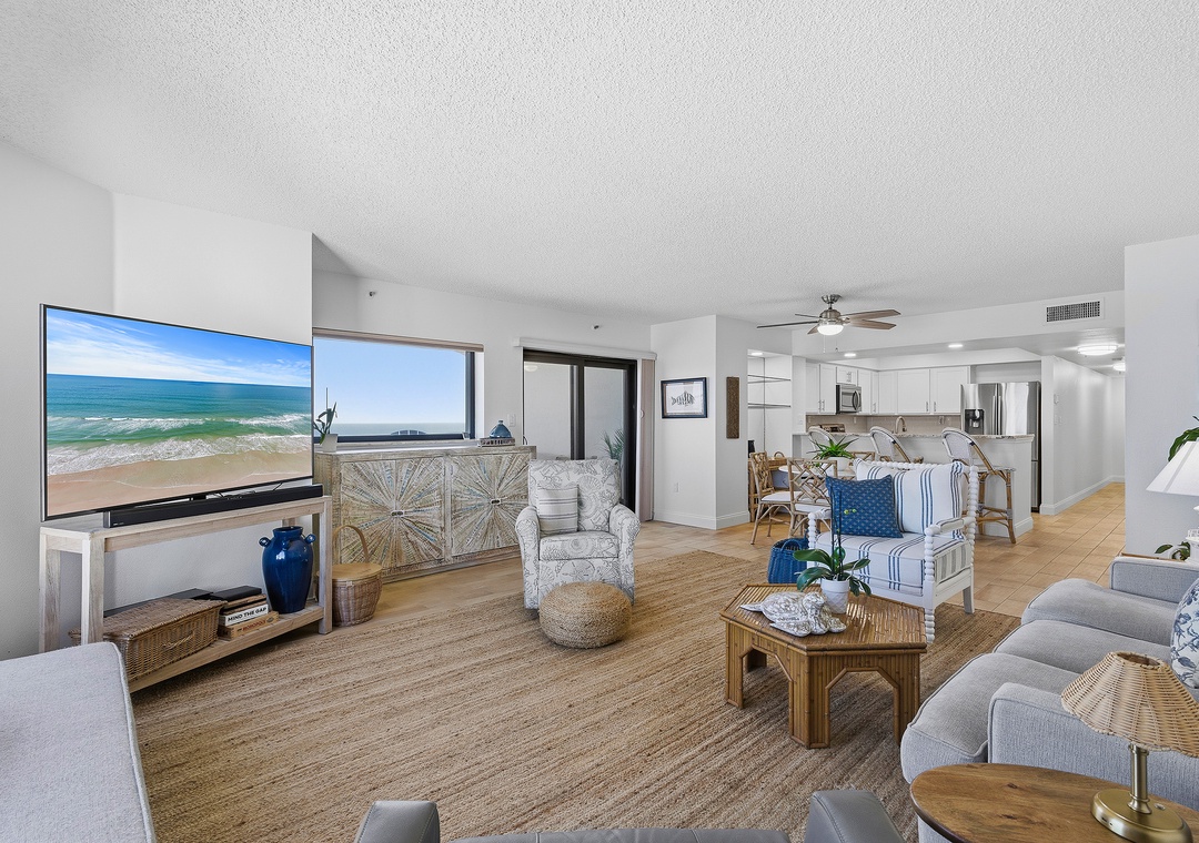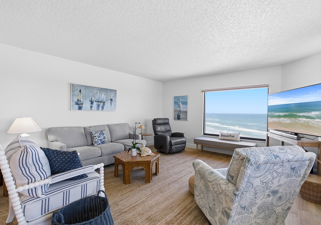 Welcome to Seascape Towers 922, your perfect escape nestled in the heart of New Smyrna Beach. This enchanting ocean-front condo is ideal for couples seeking a romantic retreat or a solo traveler yearning for some serene beachside solitude. As you step inside, you're greeted by a modern, airy layout that effortlessly combines comfort with coastal charm. The open-concept living area features plush, comfortable furnishings, perfect for unwinding after a day of exploration. Large windows frame stunning ocean views, allowing natural light to flood the space and creating an inviting atmosphere.