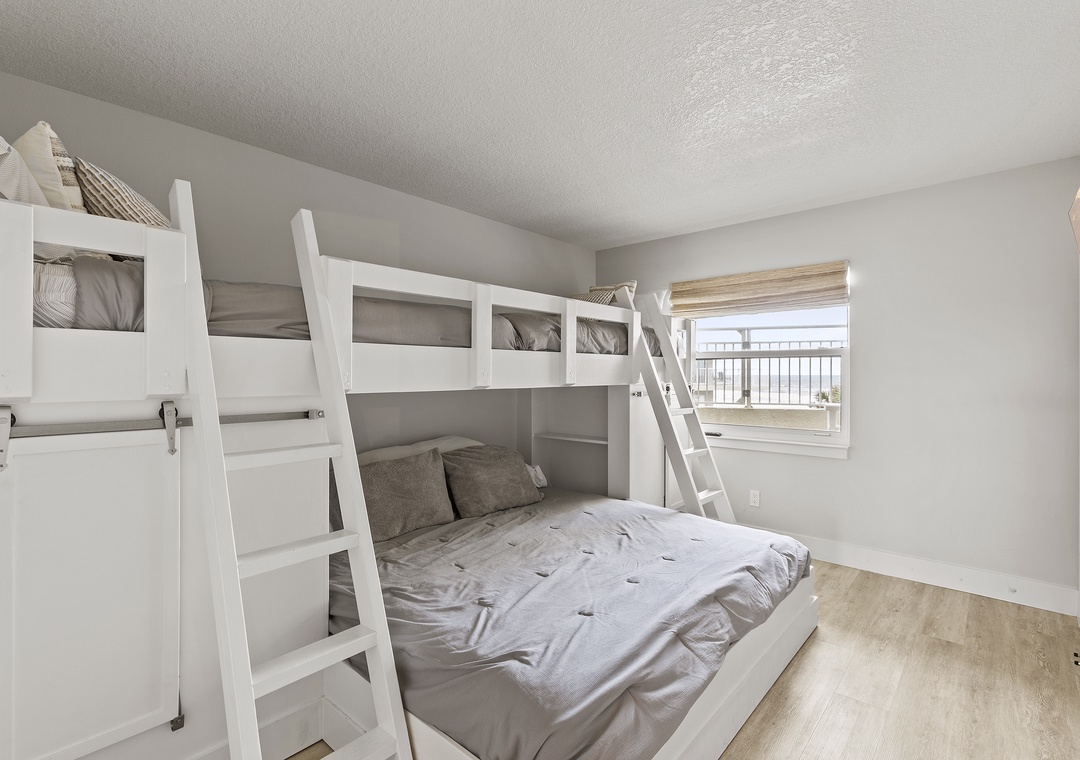 Guest Bedroom 1: 2 Twin Beds over King Bunk Bed