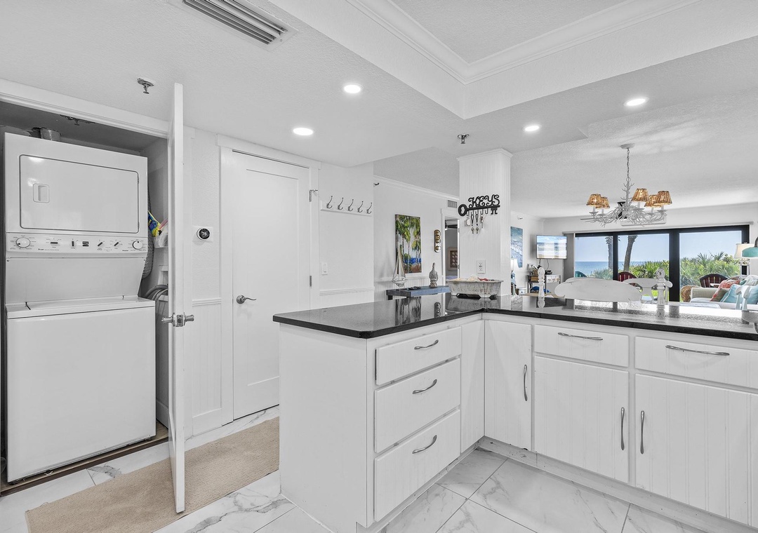 In addition to the excellent pool area, you’ll find a shuffleboard court onsite for more fun and exercise. There are plenty of open parking spots for guests. If you bring your boat or motorcycle on your trip, you’ll find onsite parking for those as well. Another valuable amenity at Shorehom by the Sea is the convenience of a washer and dryer inside every unit. No common area coin-operated laundry room here.
