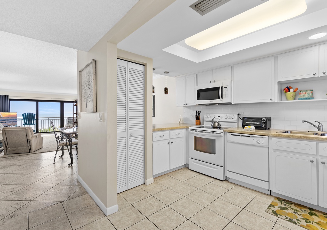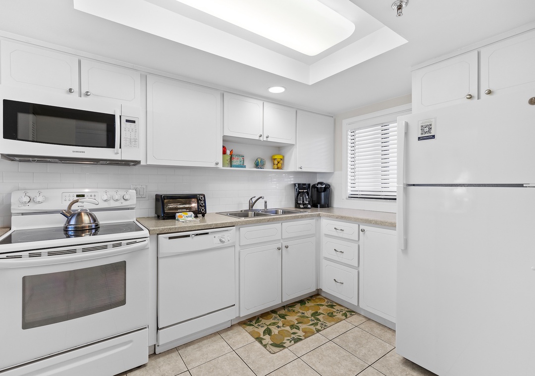 In addition to the excellent pool area, you’ll find a shuffleboard court onsite for more fun and exercise. There are plenty of open parking spots for guests. If you bring your boat or motorcycle on your trip, you’ll find onsite parking for those as well. Another valuable amenity at Shorehom by the Sea is the convenience of a washer and dryer inside every unit. No common area coin-operated laundry room here.