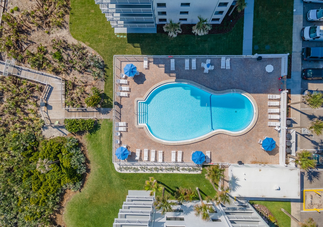You’ll have to decide where you want to spend all your time when you vacation here. Indoors you’ll treasure the comfort of our tastefully decorated and well equipped 2 bedroom/2 bathroom and 3 bedroom/3 bathroom units. Every unit has a well-stocked kitchen with all of the major appliances and all of the towels and linens your family will need. Outdoors, experience the hospitality of what many travelers have dubbed the “Friendliest Complex in New Smyrna Beach”. At just six levels, every condo on every floor at Shorehom by the Sea is easily accessed. Relish the seasonally heated pool, large gated pool deck, manicured grounds, and the path through the sea oats speckled dunes to the quiet beach. Built in 1979, this attractive complex has only 58 units.