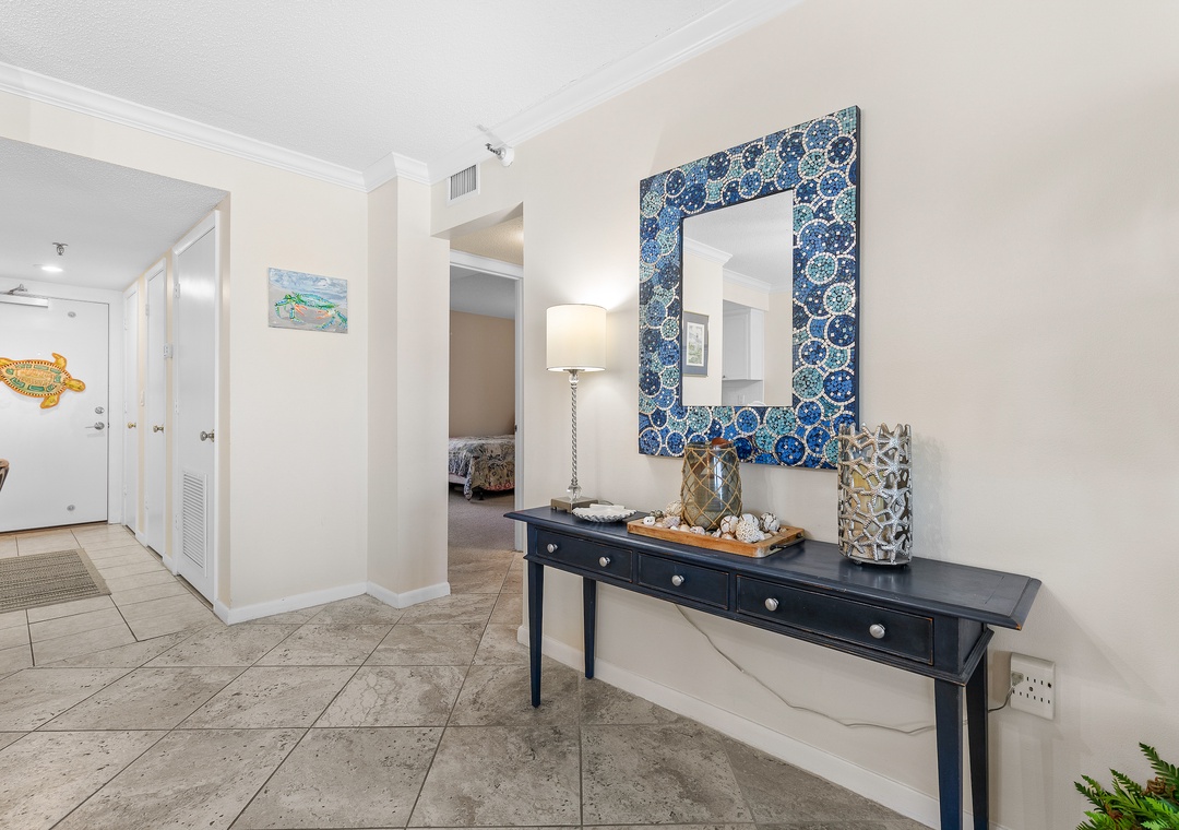 This condo was super clean, (big priority for us) and well appointed. Very spacious, plenty of room. The kitchen was fully equip with every thing you need. It was nice having two full baths and the washer and dryer in condo!! We loved the balcony and used it a lot. The elevators made it super convenient to your car and bringing things up, be cause they have carts available to use for your personals or groceries. The pool was very nice and kept up well as the showers from the beach are right outside the gate on the private ramp to the beach. We enjoyed every eve after the beach in the pool. The beach is just steps away, quite and non busy side which made it nice to go in town ( just mins away) if you like but have the privacy of a secluded beach. Highly recommended, the company was super easy to work with ,loved it. It really felt like home they way the treated you and they way this place is decorated the owners have really made it a happy place .- Reviewed On: 8/18/2017