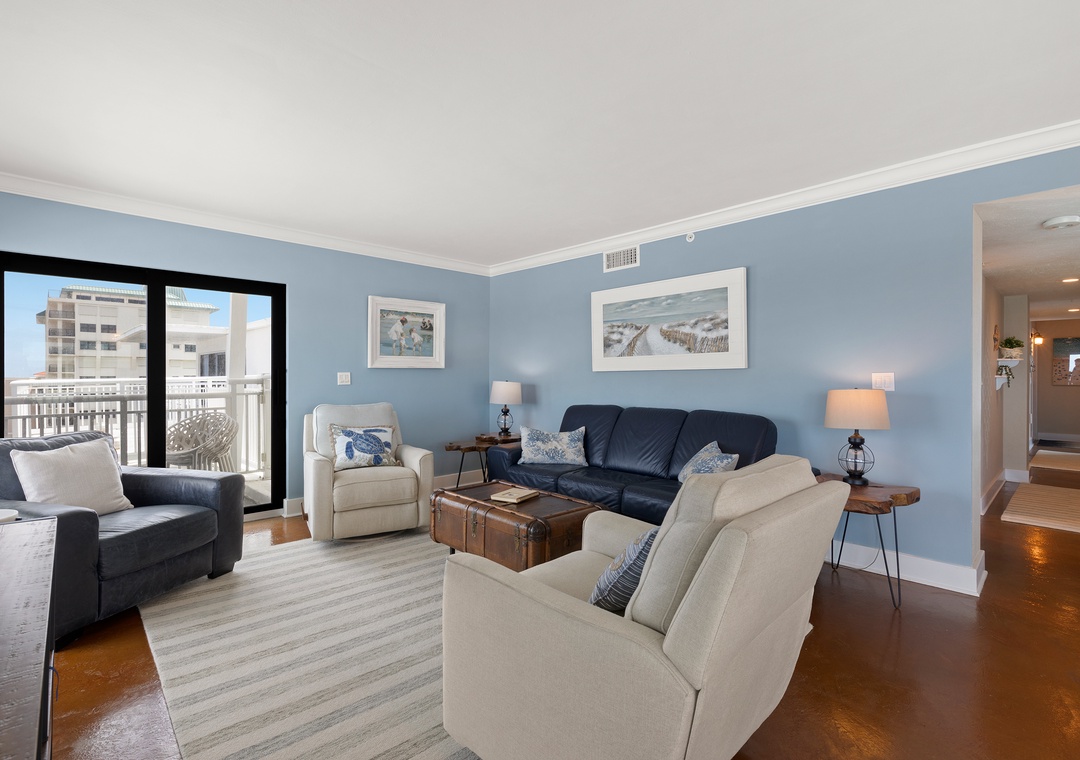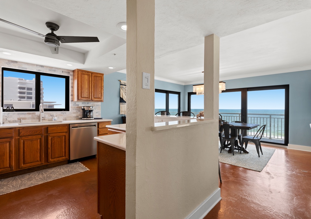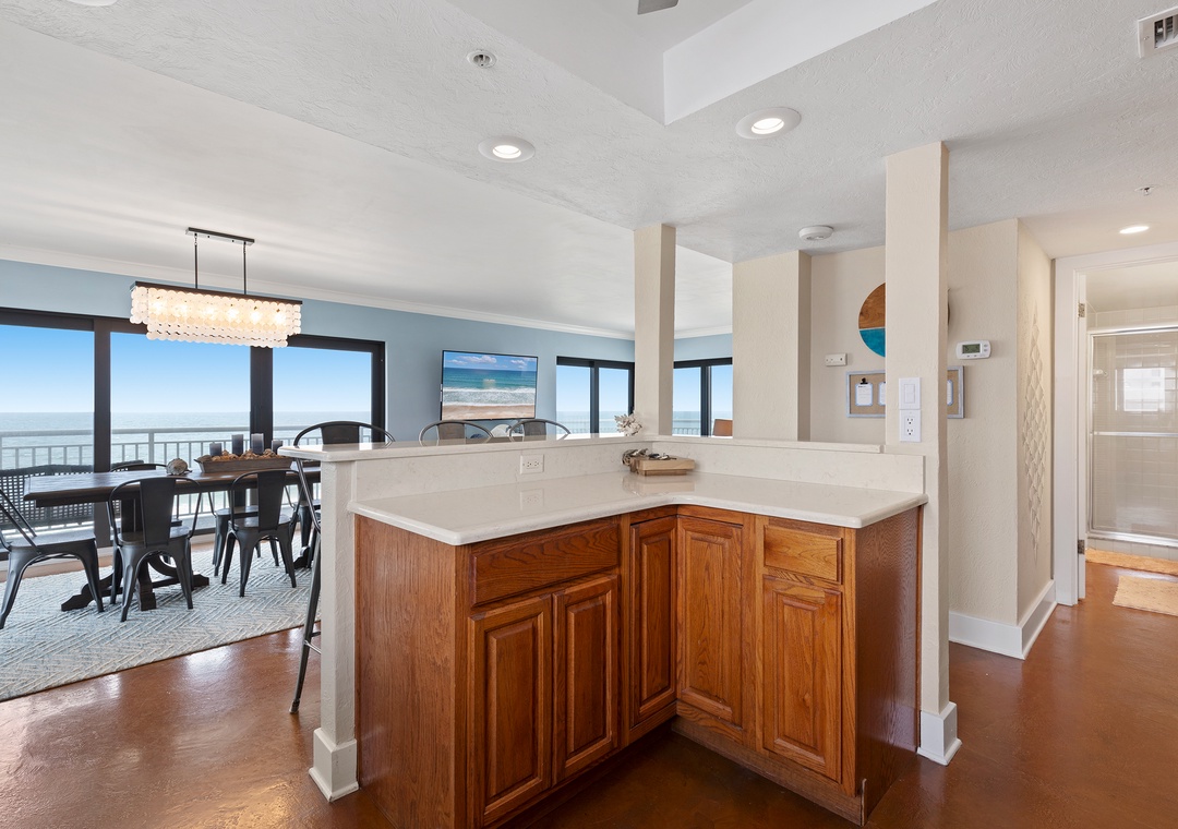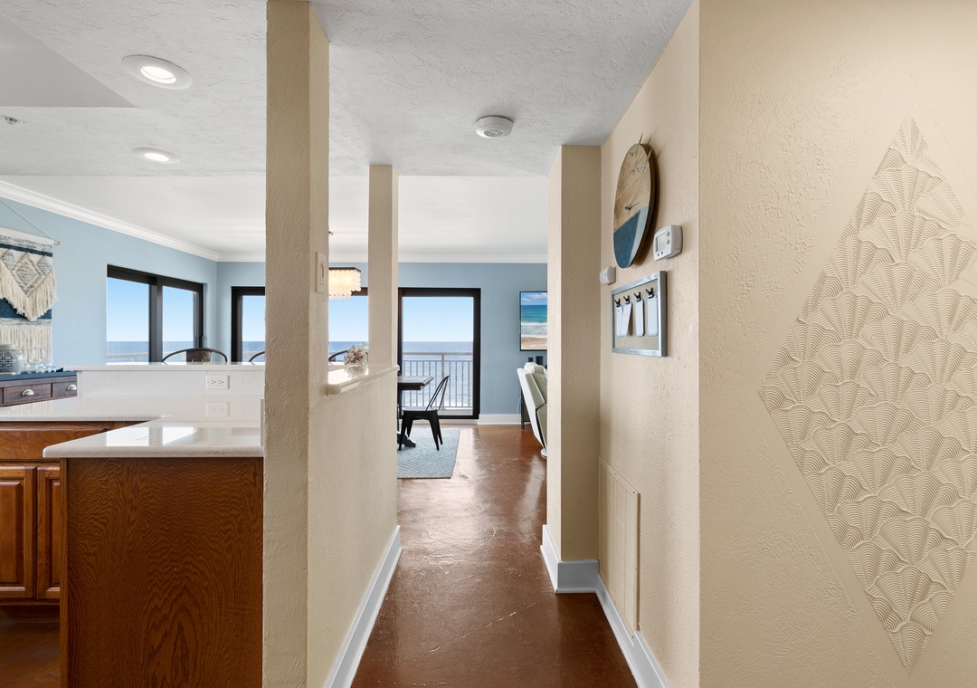 Discover Shorehom 75, a beautifully appointed 3-bedroom penthouse condo nestled in the highly coveted Shorehom by the Sea—renowned as the friendliest community in New Smyrna Beach. This spacious top-floor corner unit comfortably sleeps up to 8 guests and features an expansive private balcony offering panoramic views of the Atlantic Ocean and the shimmering pool below. Inside, natural light floods the open living spaces through large windows, highlighting the airy coastal décor and inviting ambiance. You'll enjoy all the comforts of home, including a fully equipped kitchen and a convenient in-unit washer and dryer. Whether you're here to unwind or explore, Shorehom 75 is the perfect place to make unforgettable beachside memories.