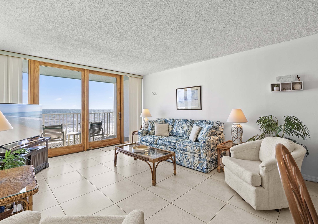 Spend your vacation at beautiful Smyrna Beach Club 607A, taking in a 6th-floor view from your sprawling balcony that is to die for. You'll have a full 180-degree view of the ocean where you can watch dolphins cavorting in the surf and occasionally even a whale lumbering past. This condo is a 1-bedroom / 1.5-bathroom, beachfront condo that sleeps up to 4 comfortably. The primary bedroom has a king bed. The handsome kitchen is a chef's dream and fully outfitted with everything you need to prepare great meals for your guests. There is a sitting area that is a perfect spot to read a book and relax. Come start making memories that will last a lifetime at Smyrna Beach Club 607A!