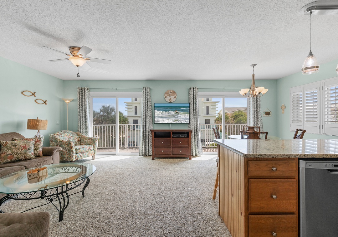 Welcome to Son and Surf! Experience beachside living just steps from the sand. This elevated 2-bedroom, 1.5-bath beach house offers two equally sized queen bedrooms on the second floor—one featuring a charming corner view. Upstairs on the third floor, you’ll find an open-concept living area and kitchen, ideal for relaxing or entertaining. Step out onto the balcony to feel the ocean breeze and catch peekaboo views of the water. Designed for comfort and convenience, this home is perfect for small families, a friend's getaway, or any beach-loving traveler. Guests share access to an outdoor shower, beach gear, and a laundry room, all located outside the unit. Start making unforgettable memories at Son and Surf—your coastal escape awaits!