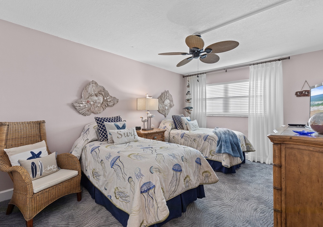 Welcome To Southwind 1002! This beautiful two-bedroom unit offers stunning ocean views and a private balcony with seating to relax and enjoy the scenery. The spacious primary bedroom features a comfortable king-sized bed, while the guest bedroom is furnished with twin beds, perfect for accommodating up to four guests. The large living room provides ample seating for relaxation, and the fully equipped kitchen is complete with all appliances, making it ideal for home-cooked meals during your stay. Enjoy a perfect coastal getaway in this thoughtfully designed space!