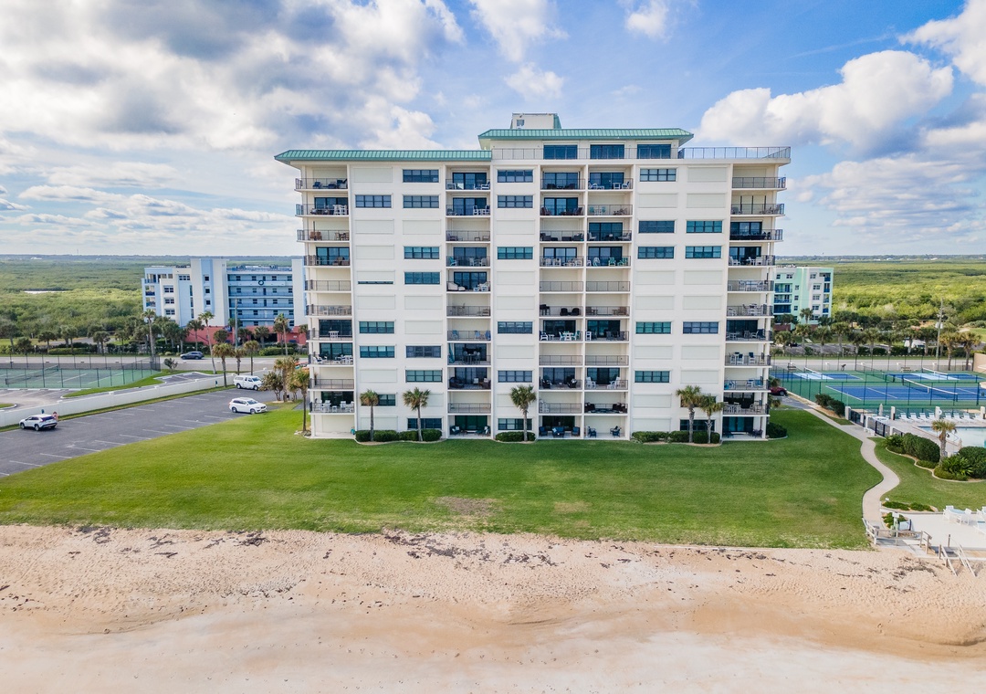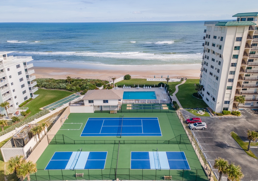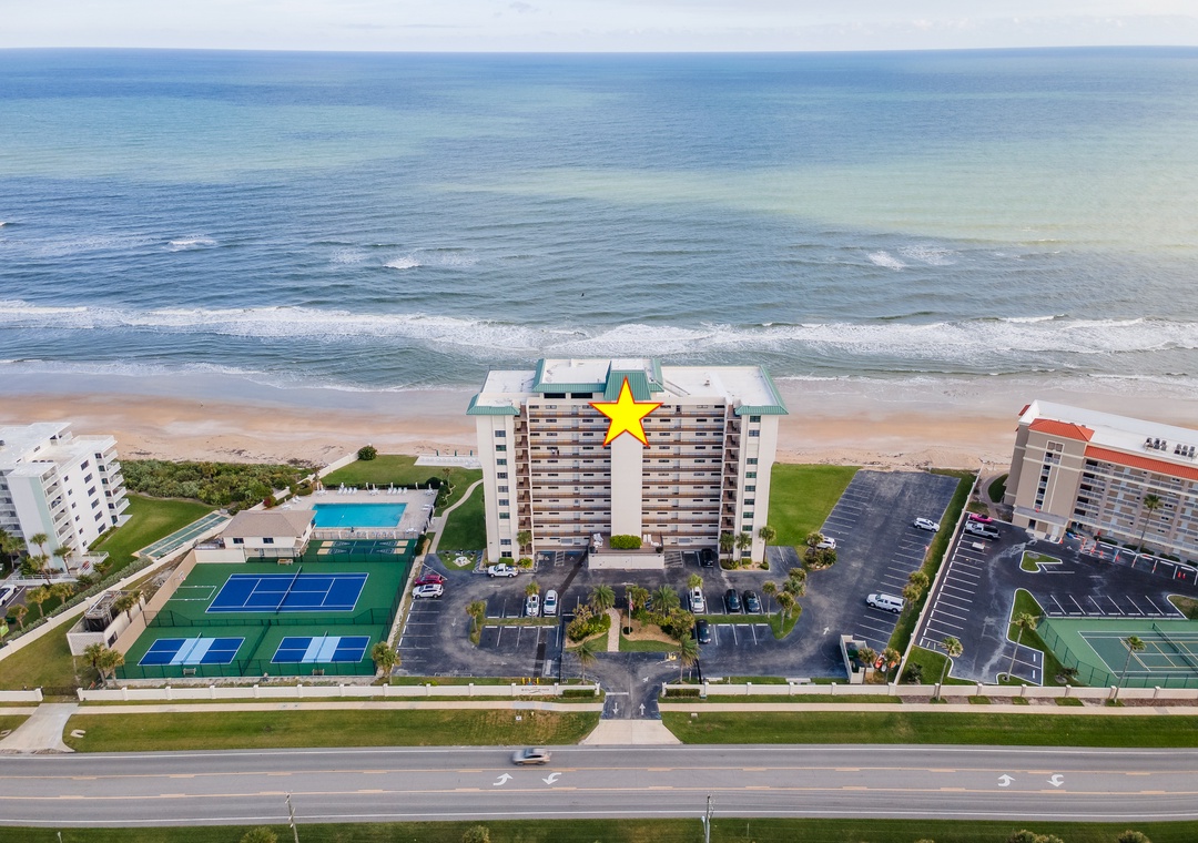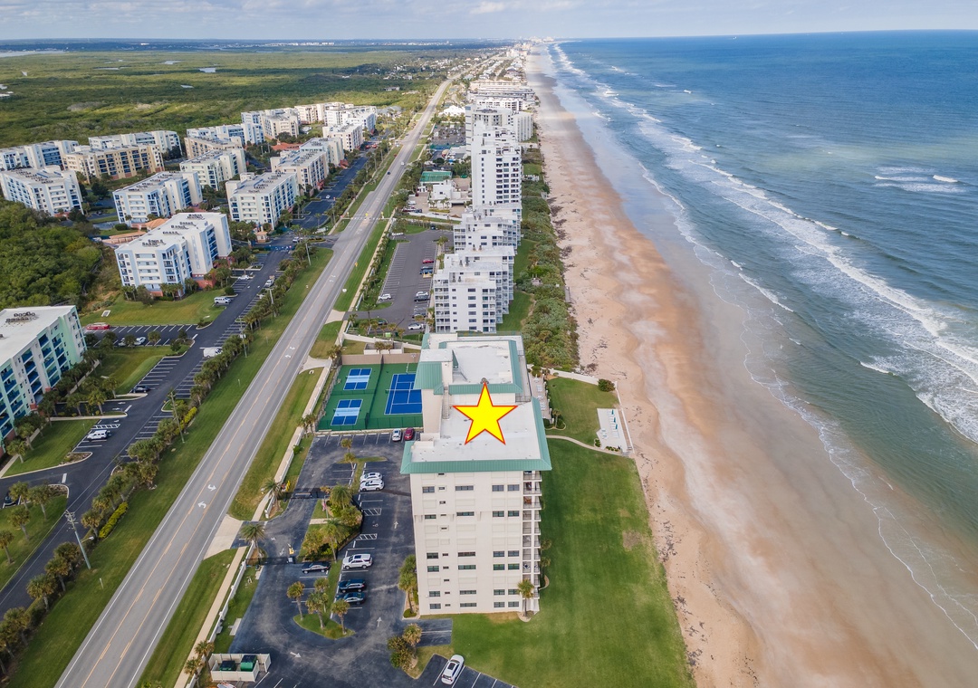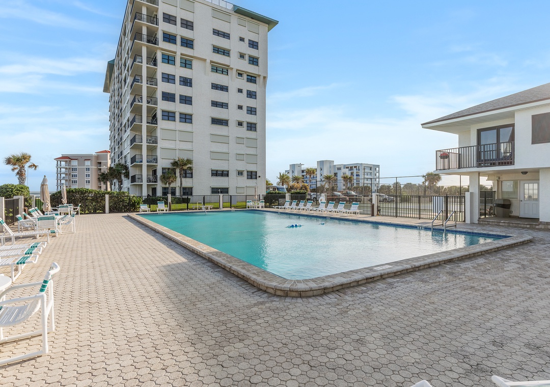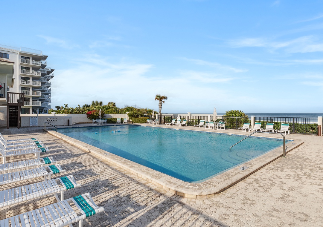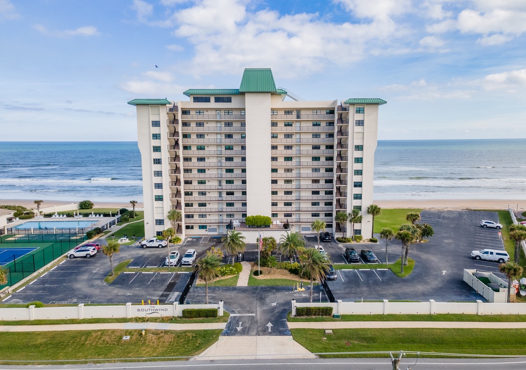 The Southwind, located on the non-driving portion of New Smyrna Beach, is an 11-story oceanfront condo equipped with tennis/basketball courts, shuffleboard courts, a beautiful grass lawn, and a gated oceanfront pool. The complex, built in 1980, has 55 individual two- and three-bedroom condos. Each condo is equipped with a washer and dryer. Be warned- once you stay here, you'll want to come back again and again. The Southwind, known as "one of the best buildings on the beach," has recently undergone a $1 Million renovation. A state-of-the-art entry gate system has just been installed, making this one of only a few facilities on New Smyrna Beach with restricted, gated access. The oceanfront pool is seasonally heated, and you'll find plenty of lounge chairs, both inside the gated pool deck and out on the beachfront sun deck as well. In addition, high-speed wireless internet access is now available for all guests so you can stay connected to the outside world while listening to the soothing sounds of the ocean waves. Follow the sidewalk to the beach access stairs and take in the panoramic Atlantic Ocean view.