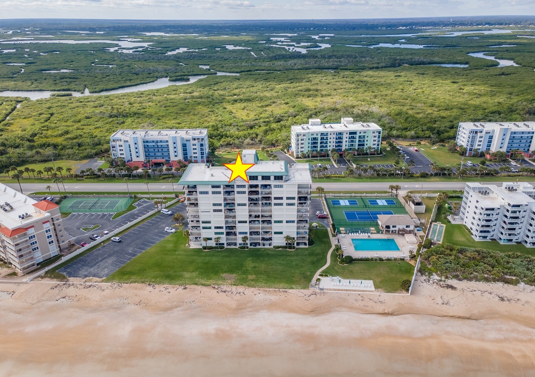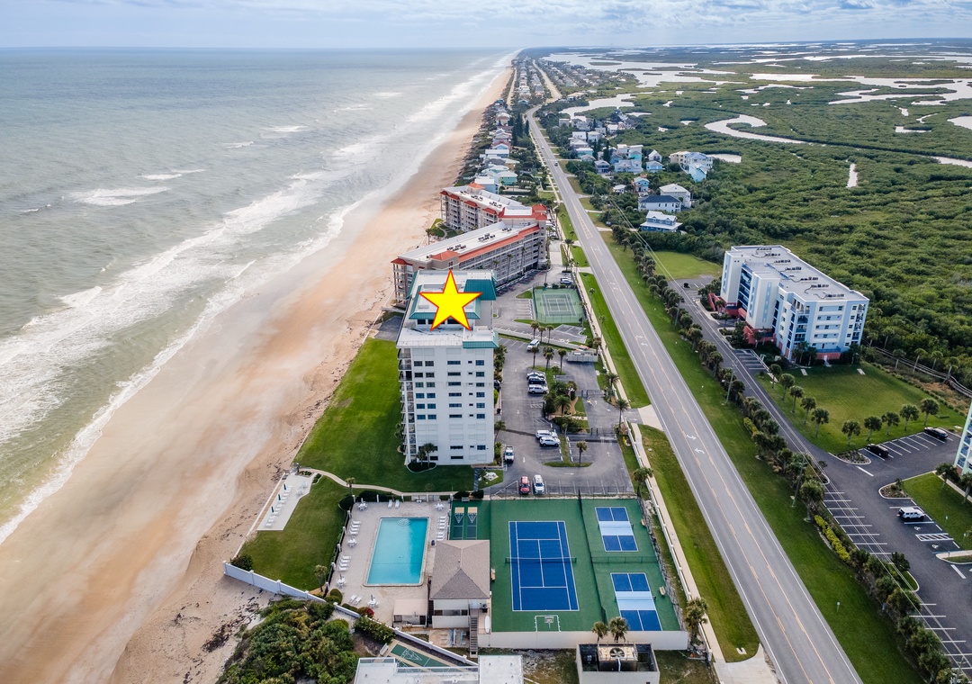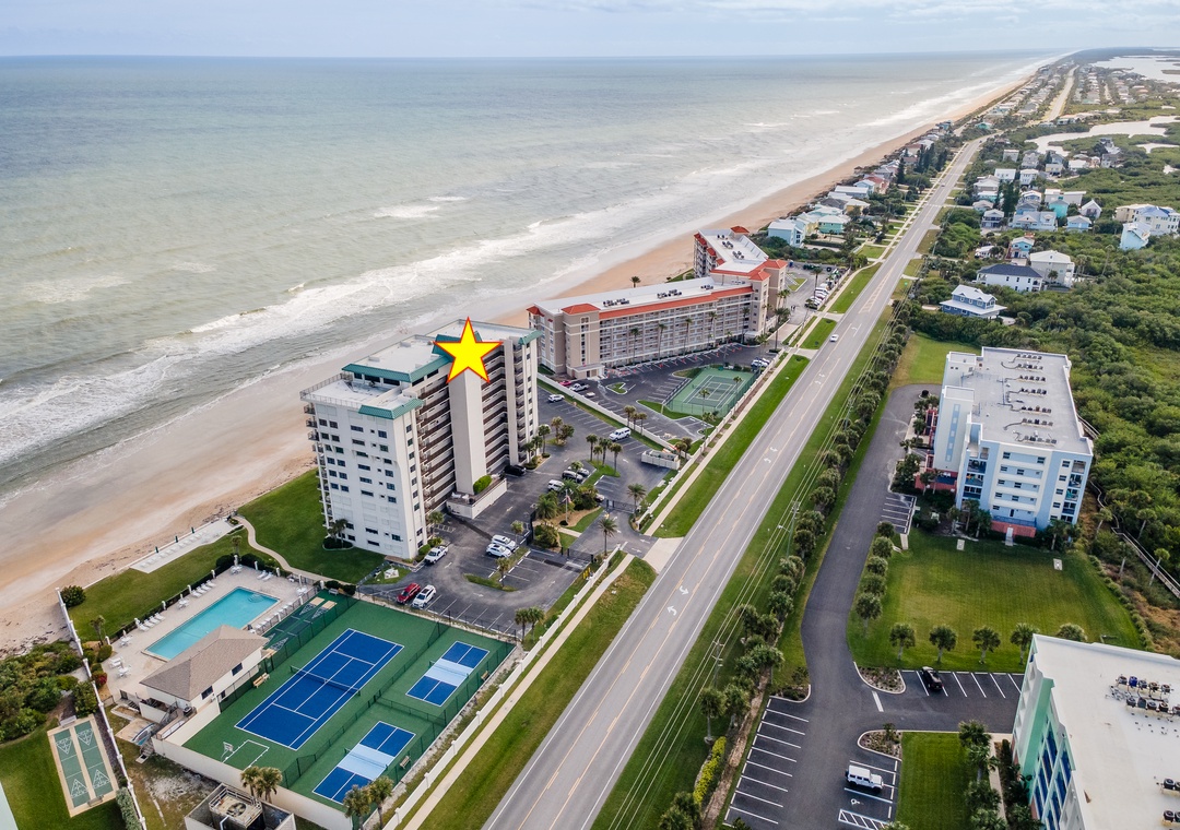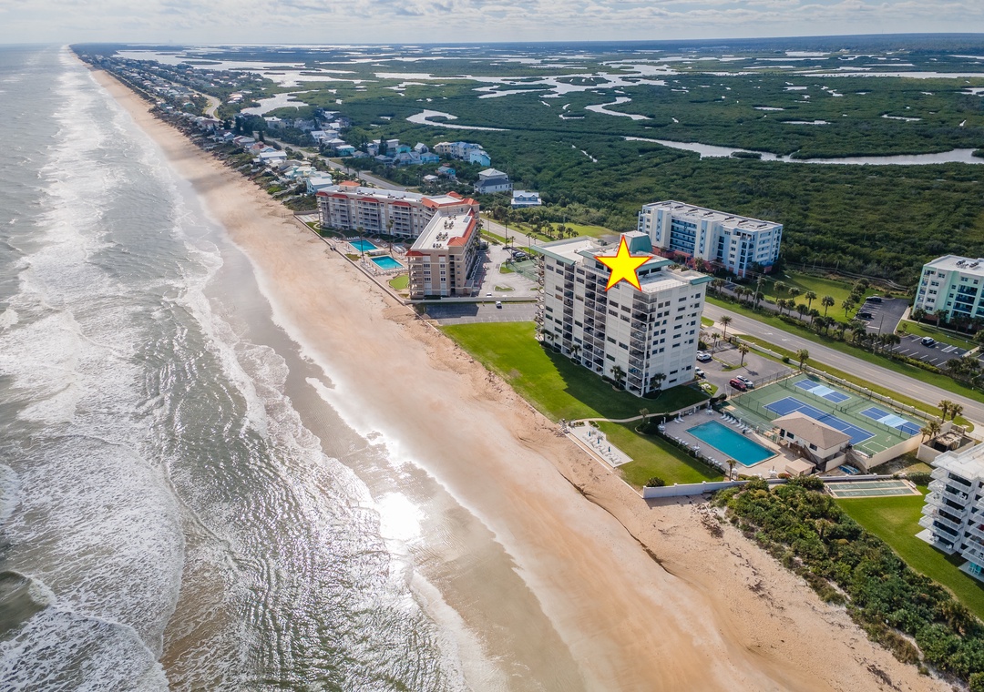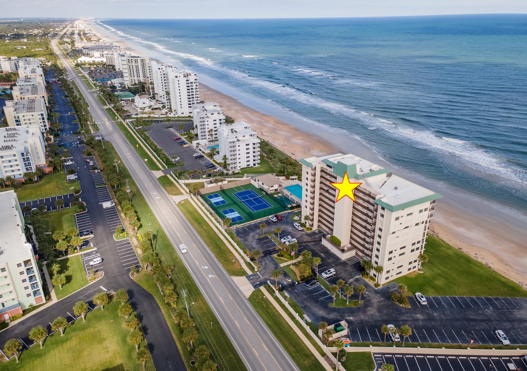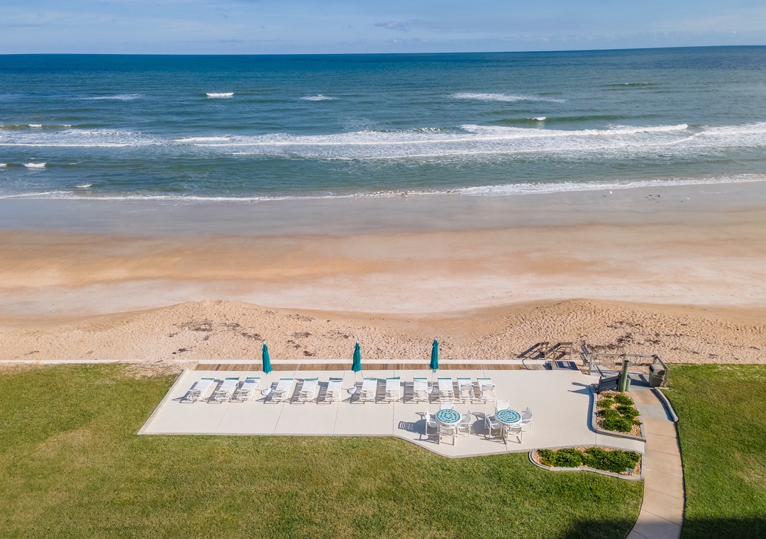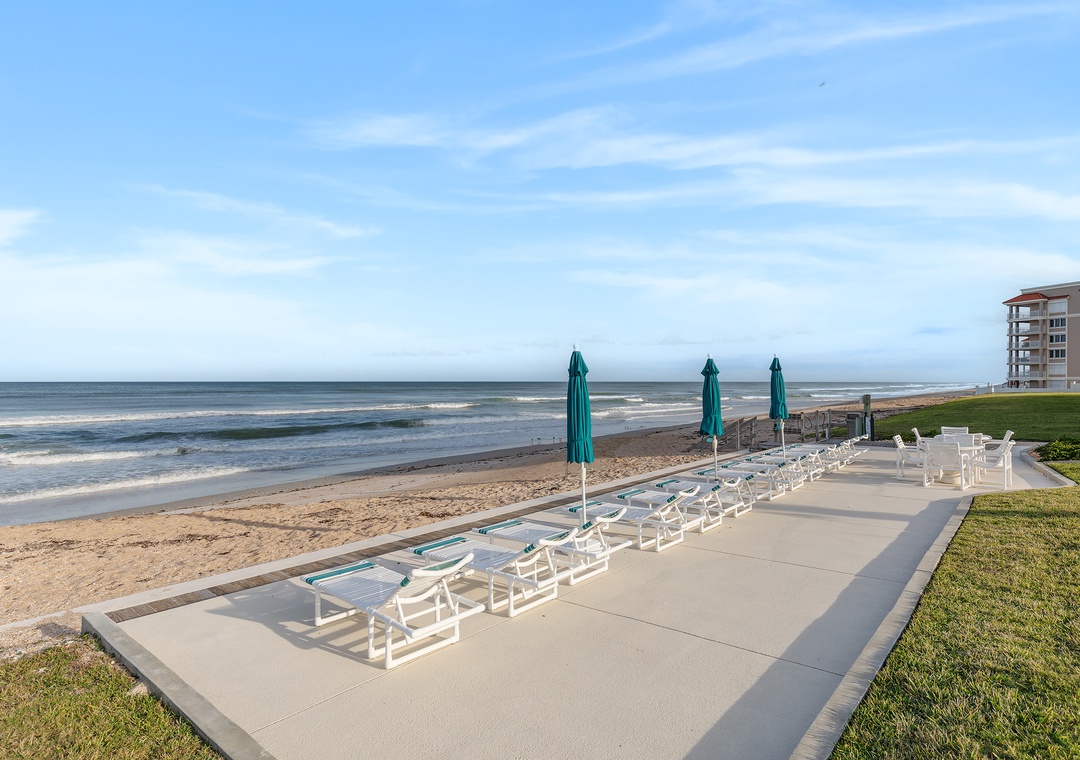 The Southwind, located on the non-driving portion of New Smyrna Beach, is an 11-story oceanfront condo equipped with tennis/basketball courts, shuffleboard courts, a beautiful grass lawn, and a gated oceanfront pool. The complex, built in 1980, has 55 individual two- and three-bedroom condos. Each condo is equipped with a washer and dryer. Be warned- once you stay here, you'll want to come back again and again. The Southwind, known as "one of the best buildings on the beach," has recently undergone a $1 Million renovation. A state-of-the-art entry gate system has just been installed, making this one of only a few facilities on New Smyrna Beach with restricted, gated access. The oceanfront pool is seasonally heated, and you'll find plenty of lounge chairs, both inside the gated pool deck and out on the beachfront sun deck as well. In addition, high-speed wireless internet access is now available for all guests so you can stay connected to the outside world while listening to the soothing sounds of the ocean waves. Follow the sidewalk to the beach access stairs and take in the panoramic Atlantic Ocean view.