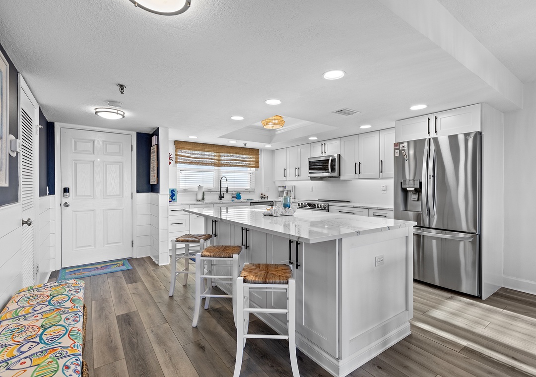 We loved our beach vacation at this beautiful ocean front condo. Comfortable spotless unit and beautifully decorated in beach motif. My favorite room was the open kitchen with upgraded appliances, well stocked with very pretty dishes and glassware. Made eating feel Like a luxury . Comfortable seating on balcony perfect for coffee in the morning and wine at sunset. Can’t wait for next visit.- Reviewed On: 12/10/2025