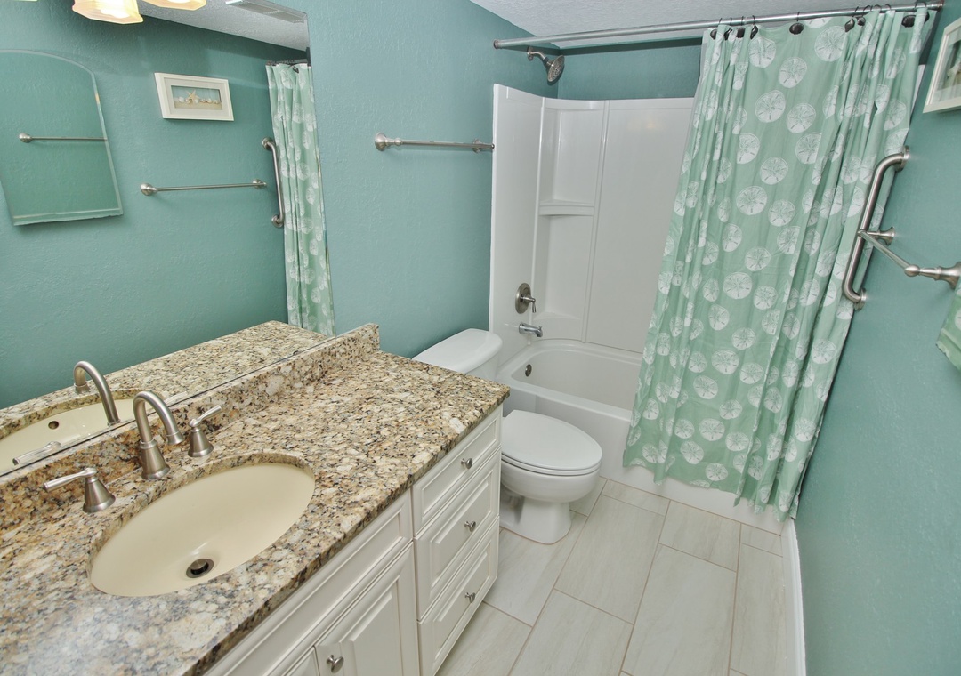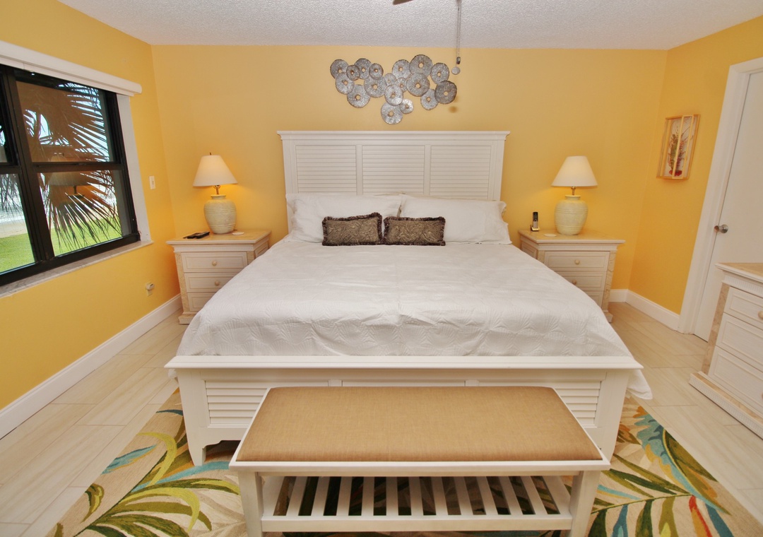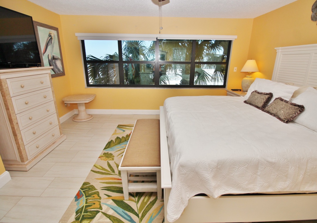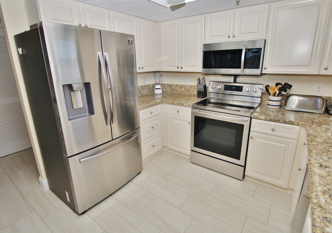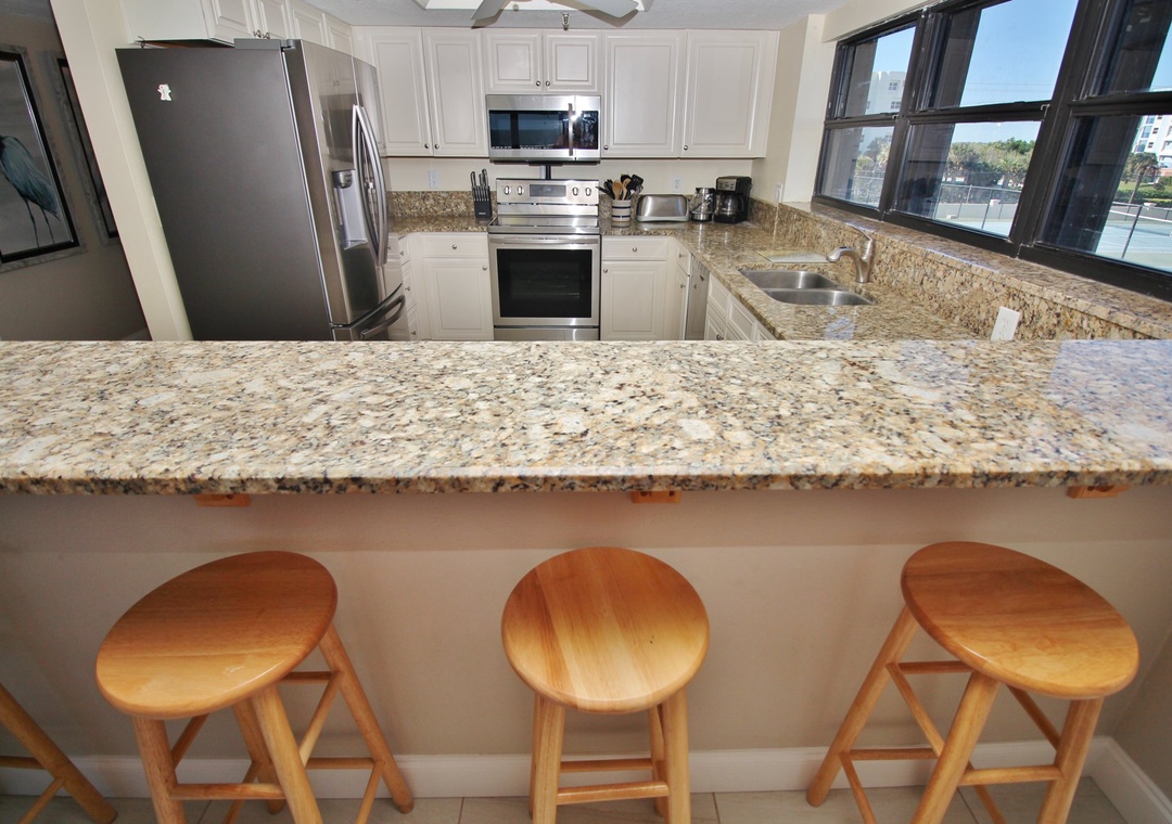 Upon walking in, the condo sets the soul at ease with its wrap-around windows looking onto the sea. Light tile flooring and neutral walls create the perfect backdrop for the dazzling view. As your family unpacks, kick off relaxation-mode with a snack in the kitchen. The kitchen boasts of white cabinetry, granite countertops, and brand new stainless steel appliances. On the nights you decide to stay in, you'll find every cooking necessity at your fingertips. Pots and pans, cooking utensils, a drip coffee maker, toaster, blender, and more are provided. Those on dish-duty won't mind the chore as the kitchen sink looks directly onto the pool, tennis court, and non-driving beach.