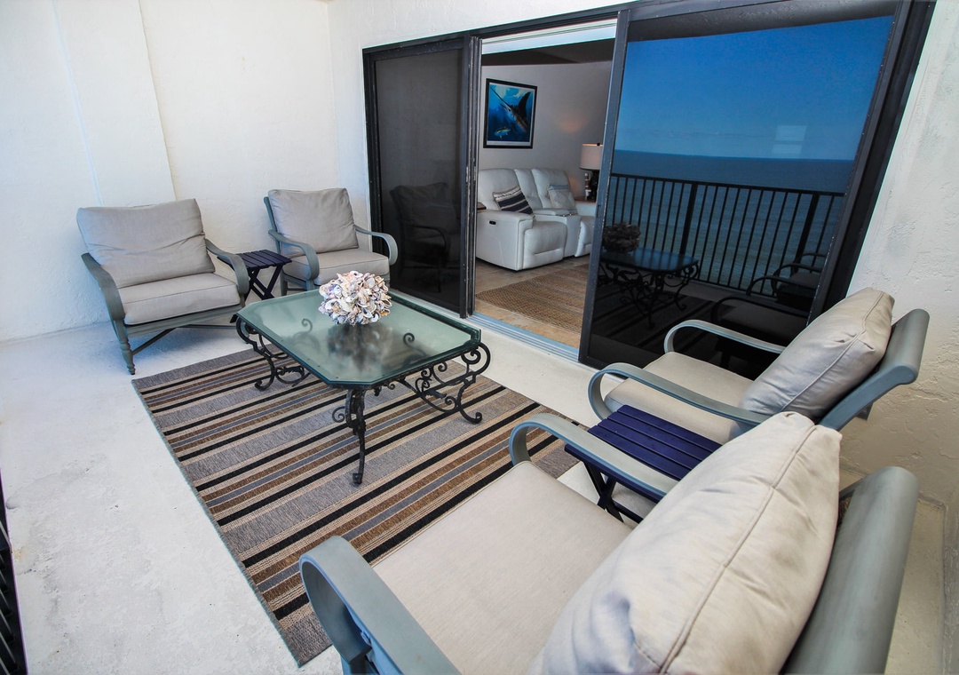 The moments you'll remember most will undoubtedly be on the oceanfront balcony. Four chairs furnish this space and allow guests to enjoy NSB's beauty. Southwind is located on the no-drive portion of the beach making the view clear and unobstructed. You'll find yourself here with coffee in hand for the glorious ocean sunrises.