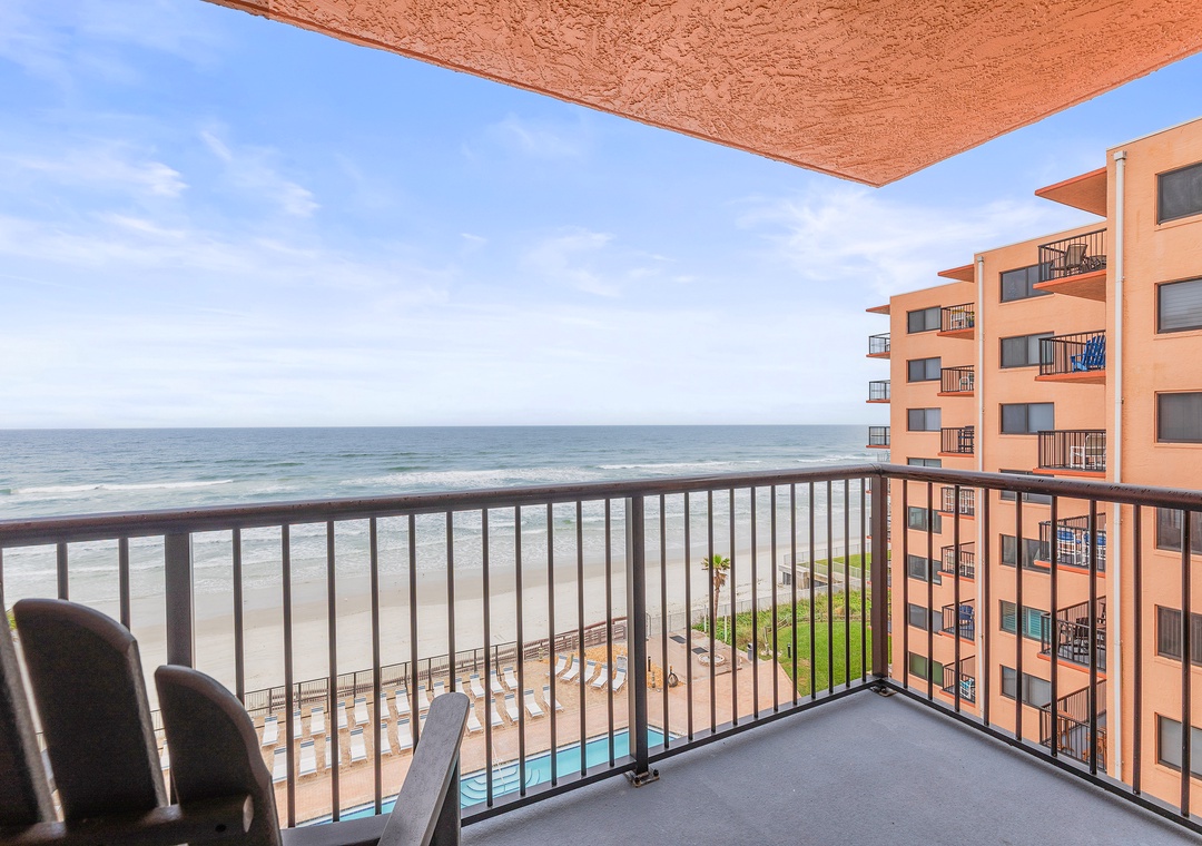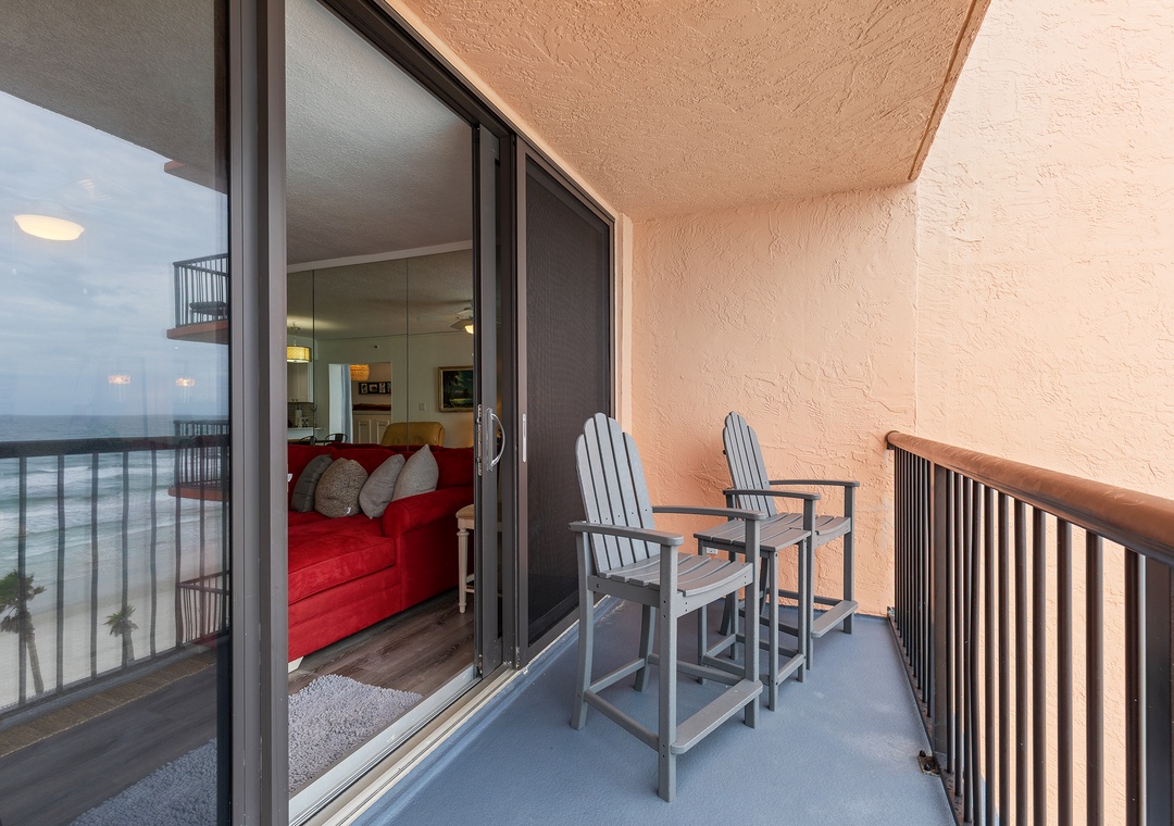 You'll find early evening to be one of your favorite times during your stay here. Create your own "happy hour" and sip cocktails to a pink and orange sky on the furnished, oceanfront balcony. There's no better way to end each day than with good company, a fruity drink, and the lapping waves of the ocean!