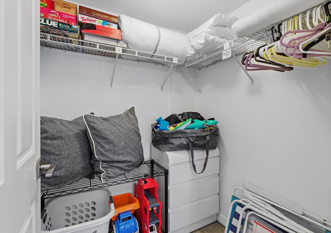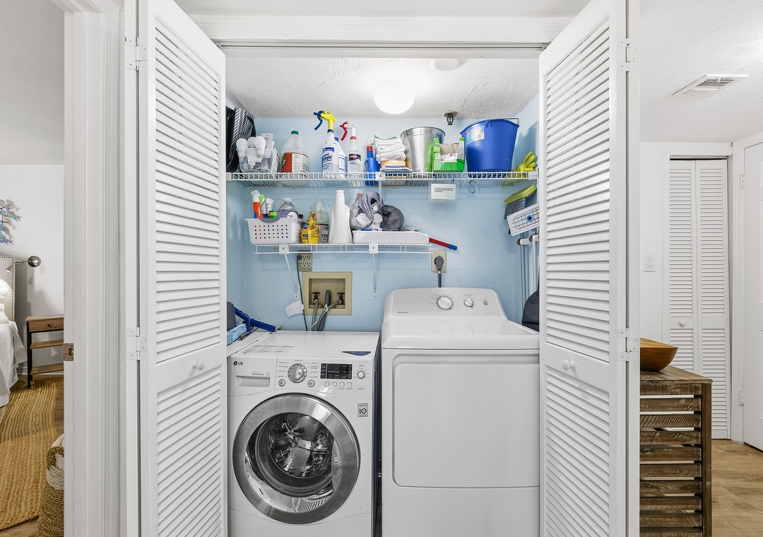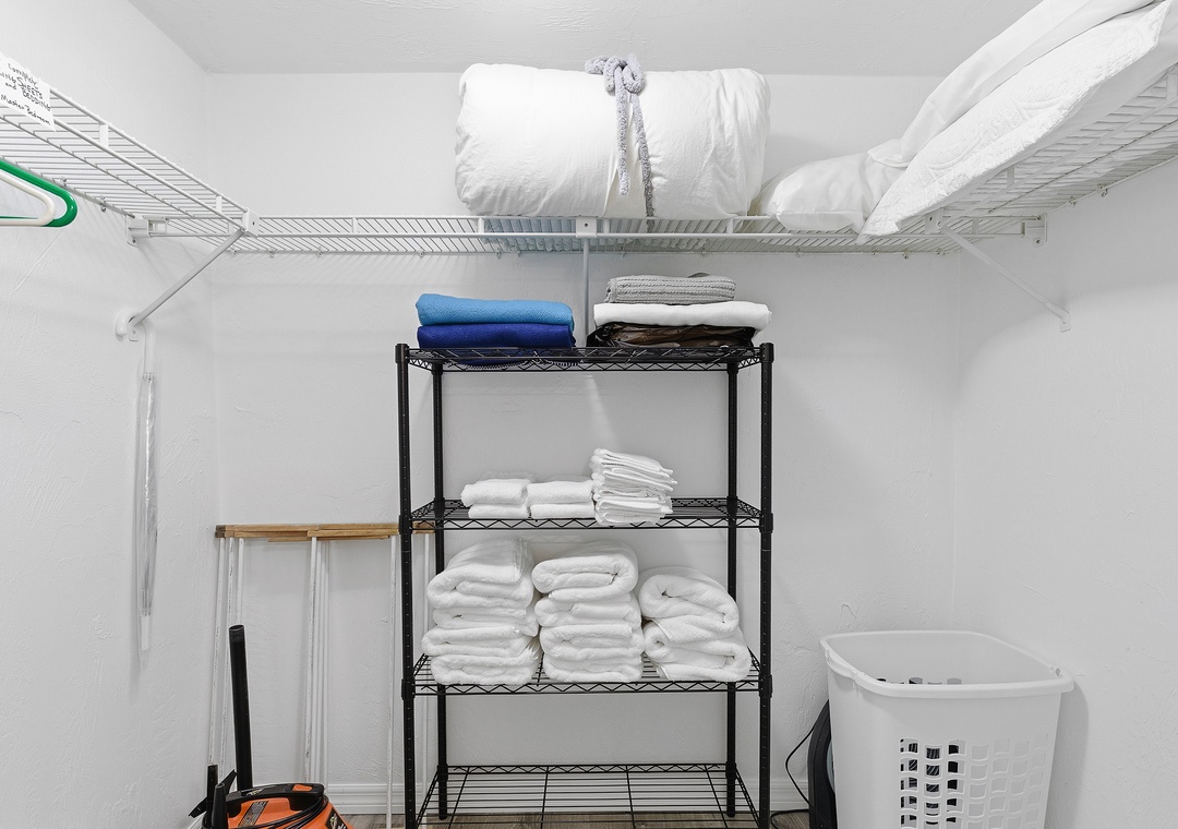 The condo is equipped with plenty of linens, towels, and all the conveniences of home to make your stay comfortable. A full-size washer/dryer is provided in-unit.