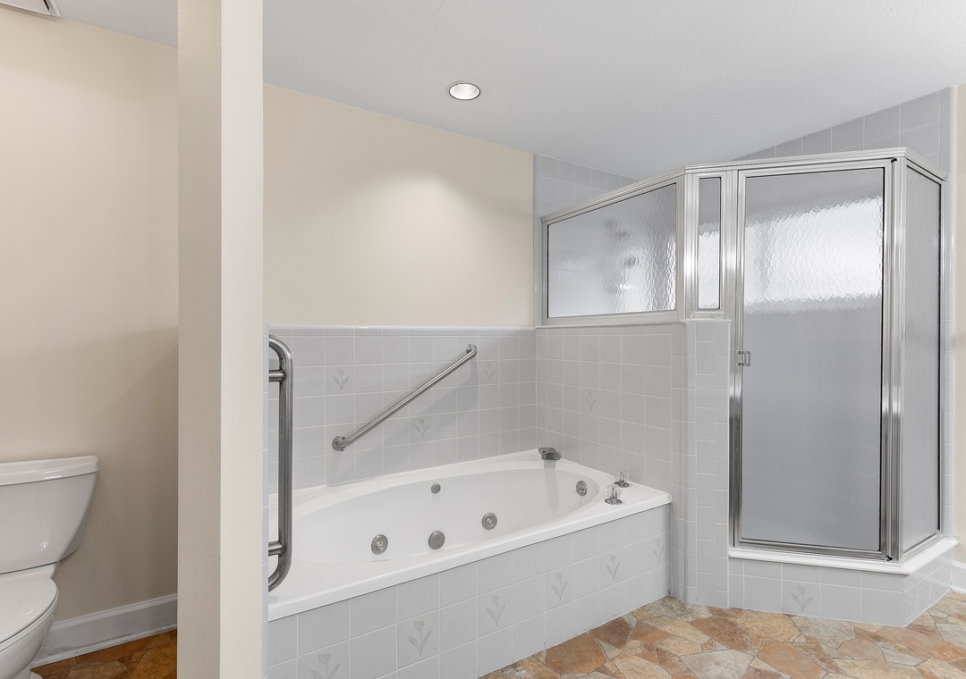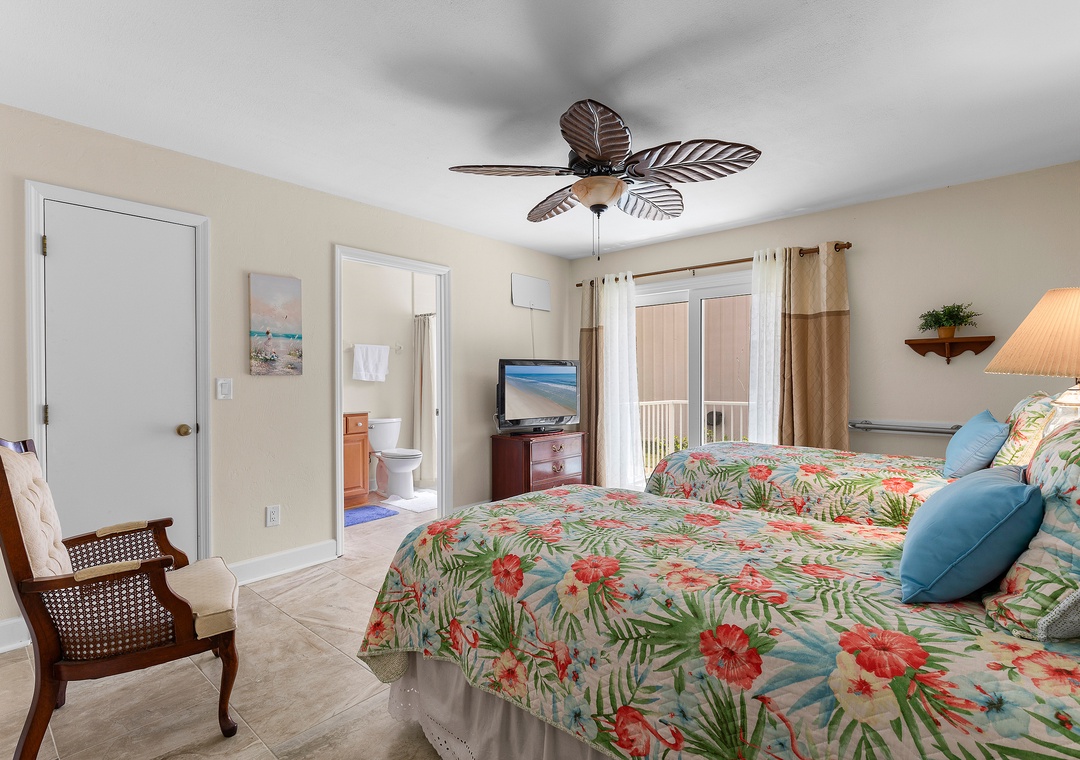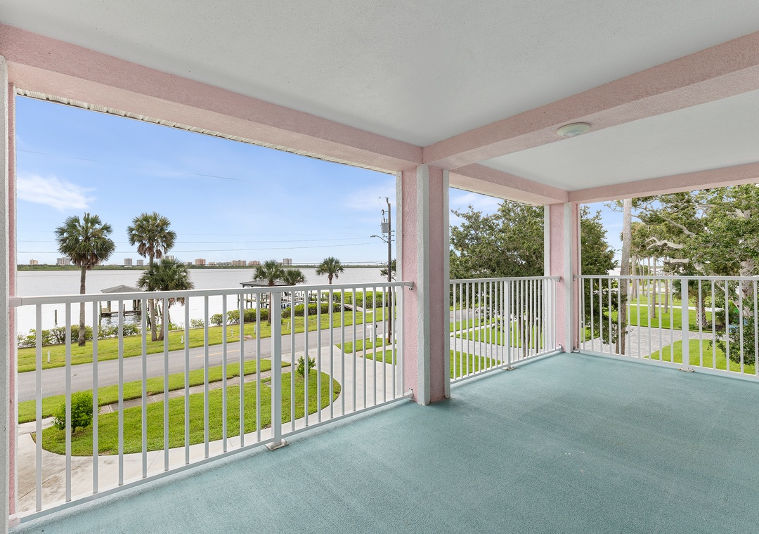 East Wing: Features 2 bedrooms, including the primary King suite and Double/Full bedroom, bathroom with whirlpool tub and separate shower, with a private balcony overlooking the Intracoastal Waterway and Halifax River—perfect for some solitude or sunrise views.